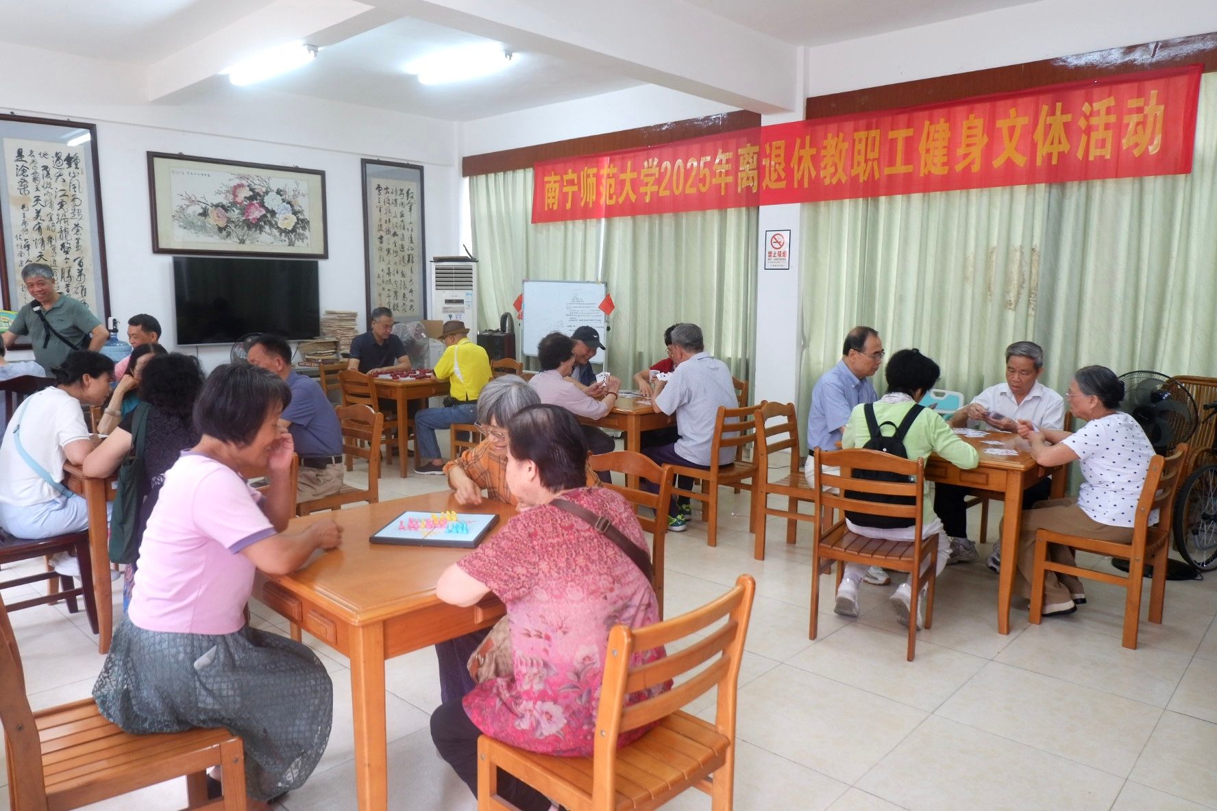 活动设有健步走、乒乓球、桌球、象棋、麻将、扑克和跳棋等项目。丰富的项目吸引了300多名离退休教职工参加,活动中老同志们精神矍铄、老当益壮,欢声笑语充斥着整个现场。他们不仅在活动中锻炼了身体,舒缓了心情,更是展现了Beat365离退休教职工团结和谐、充满活力、健康积极的精神风貌。
