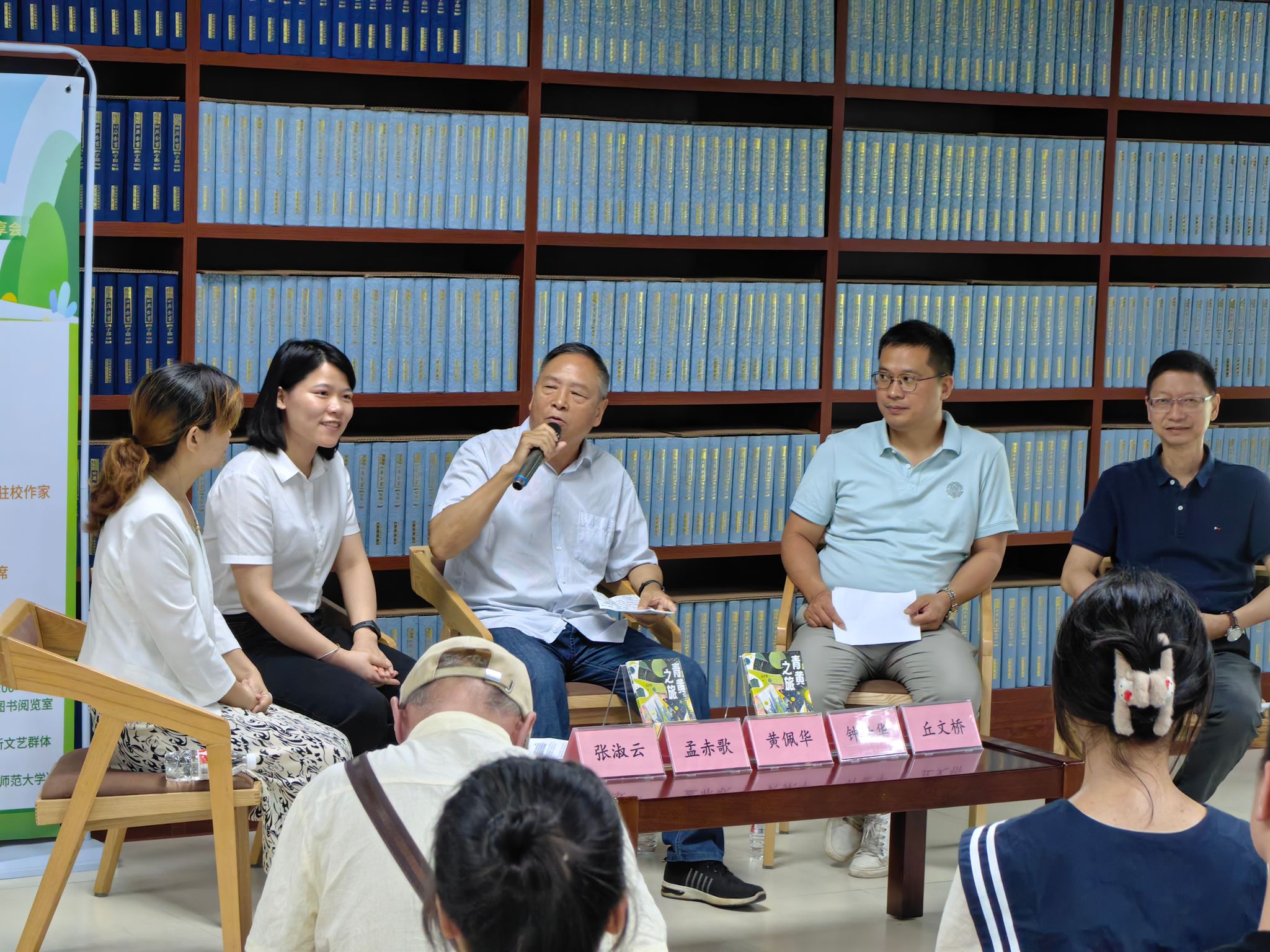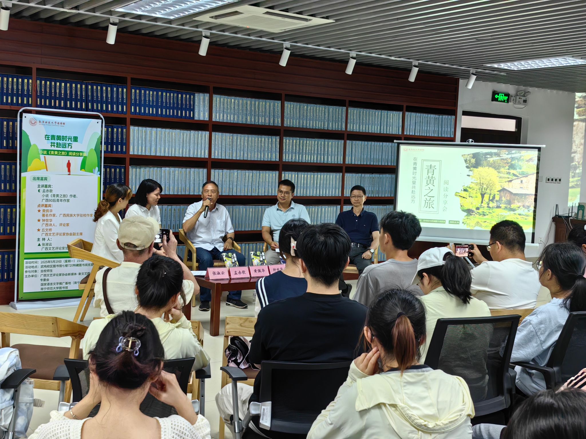 为深化全民阅读工作,营造书香校园氛围,5月19日下午,广西文艺评论家协会新媒体·新文艺群体专委会、国家语言文字推广基地(Beat365正版唯一官网必一)与Beat365图书馆在武鸣校区图书馆联合举办“广西作家进校园”活动。活动由广西文艺评论家协会副主席、Beat365教务处副处长张淑云主持,特邀广西北部湾投资集团团委书记、青年作家孟赤歌开展《青黄之旅》阅读分享会,著名作家、广西民族大学驻校作家黄佩华,诗人、评论家钟世华,广西文艺评论家协会副主席丘文桥、图书馆副馆长玉丽东等嘉宾出席,与60余名师生共话文学创作与人生成长。