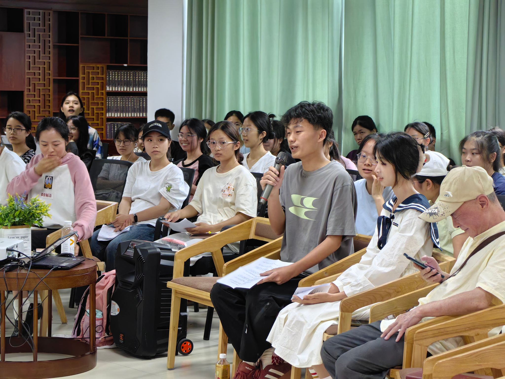 互动环节中,师生踊跃分享阅读感悟。人工智能学院周渝斌同学探讨“成熟是动态过程而非终点”;新闻与传播学院刘佩妮同学将书中母女温情与自身职业规划结合,提出“朝阳与夕阳皆可为序章”,反思“取舍之道”;外国语学院丘蕊怡同学认为“这是一部很值得阅读的作品”。现场讨论热烈,展现了师生对文学与生活的深度思考。