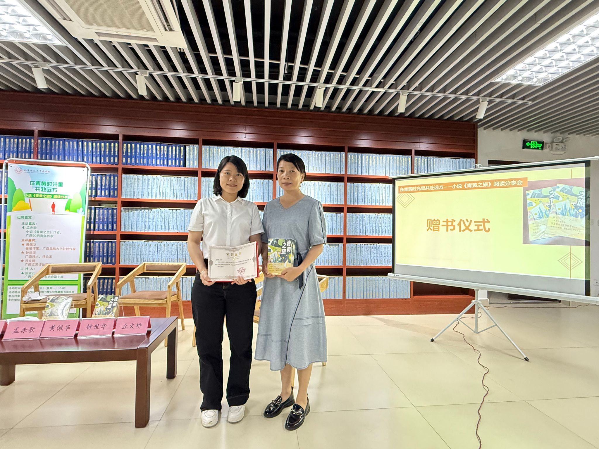 活动最后,孟赤歌向图书馆赠送作品《青黄之旅》,玉丽东代表图书馆接受了赠书。张淑云作总结发言,她表示:“人生就是一场旅行,真正让这场旅行有意义的不仅是对美景的感受,更是克服一个一个困难后的成就感,体现了自我价值的提升。希望同学们在未来的生活中走出一段精彩的青黄之旅。”本次活动以书为媒,搭建作家、学者与师生的对话平台,深化了文学育人功能,为构建书香校园注入新活力。