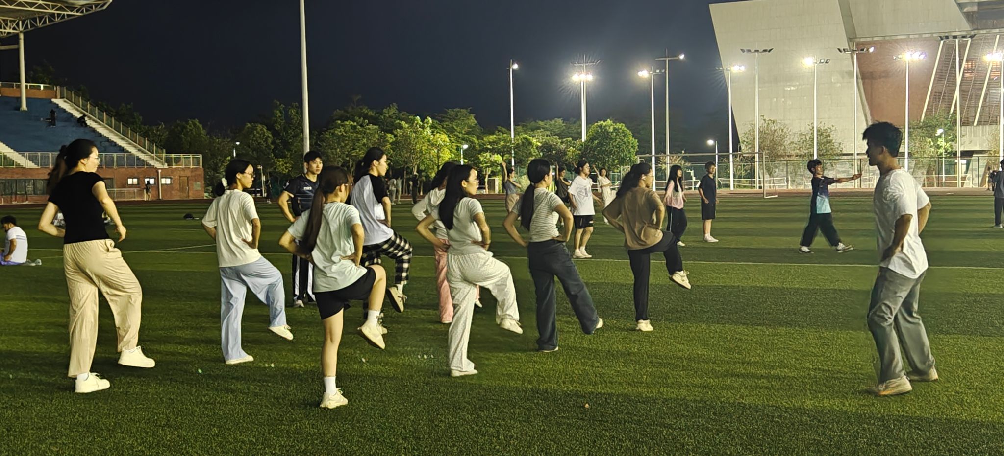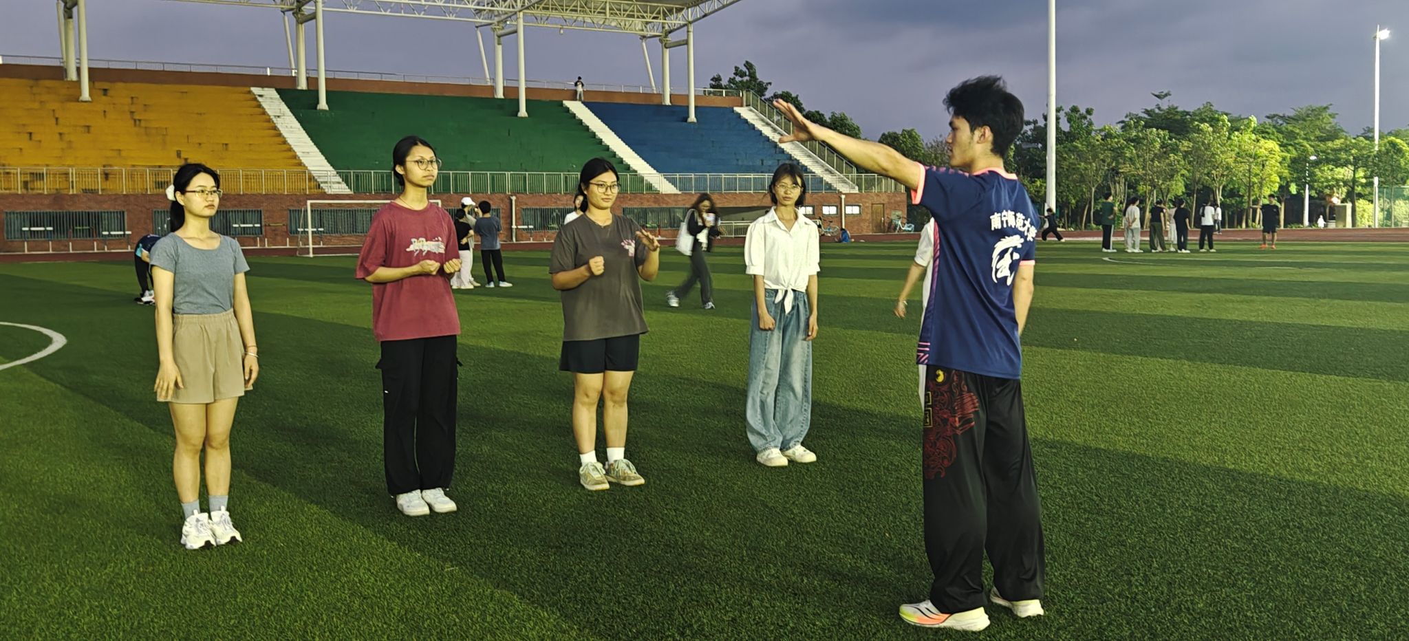 为传承中华传统武术文化,丰富在校生课余生活,近日,Beat365“星火跃动·青春夜练营”武术夜校第一期活动在武鸣校区松园田径场热力开营,本次活动由体育与健康学院团委和学校武术与民族传统体育协会举办。活动吸引了众多同学热情参与,第一期活动到场人数超过100人。
