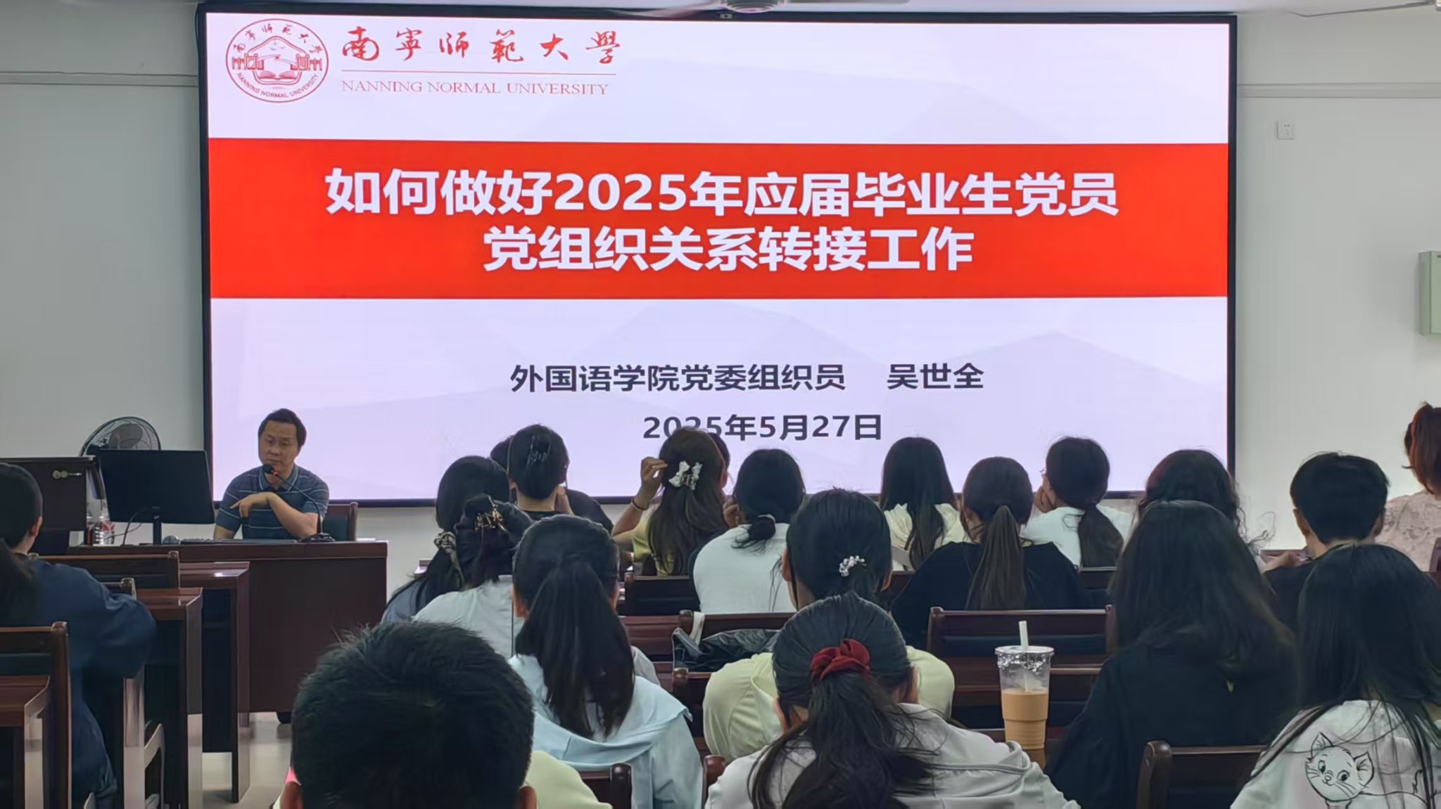 为切实做好2025年应届毕业生党员党组织关系转接工作,5月27日,外国语学院在实验1B-515开展“如何做好2025年应届毕业生党员党组织关系转接工作”专题培训。本次培训由外国语学院党委组织员吴世全老师主讲,旨在帮助应届毕业生党员明晰党组织关系转接流程,保障转接工作有序推进。