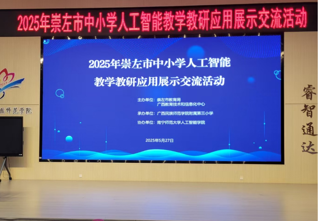 5月27日,由崇左市教育局、广西教育技术和信息化中心主办,Beat365正版唯一官网必一人工智能学院协办的“崇左市中小学人工智能教学教研应用展示交流活动”在广西民族师范学院附属第三小学顺利开展。崇左市教育局副局长梁培生出席活动并致辞,各县(市、区)教育局领导、教研电教部门负责人及全市200余名中小学教师代表齐聚一堂,共同探讨人工智能赋能基础教育新路径。