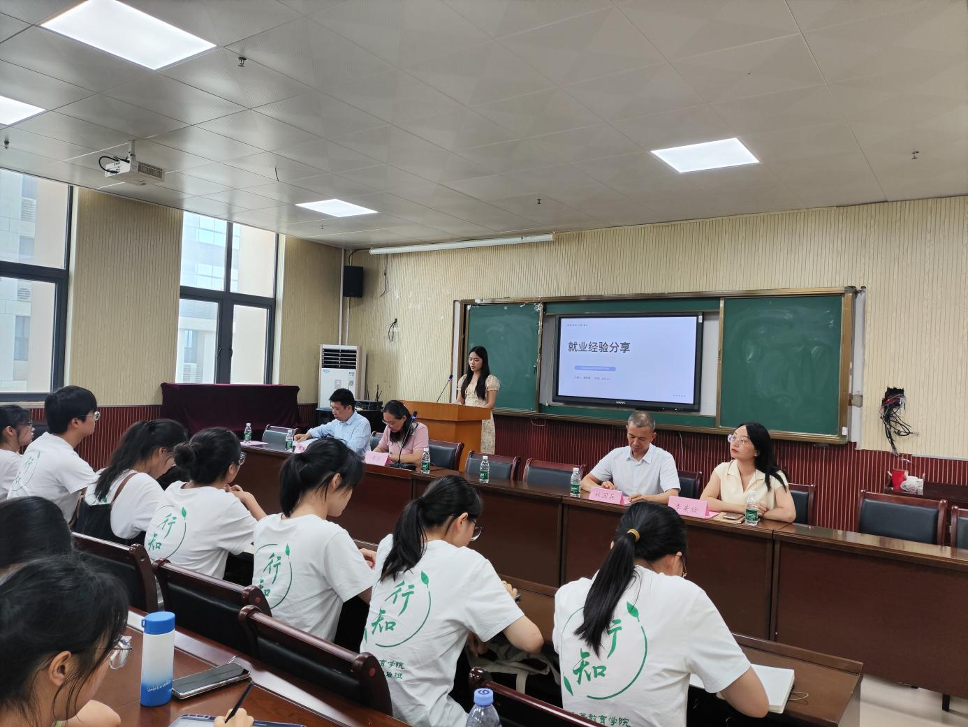 会议伊始,梁宇院长和梁秀清副院长分别讲话,对陶班学生提出要求,寄语殷切希望。随后,21级、22级的同学分享了自己在学习、实习、考研、就业等方面的经验。其中李欣悦同学分享了研究生备考经验;莫映雪同学分享了就业中的笔试、面试经验;黄欣燕同学分享了大学期间的学习、生活和学习委员工作的经验;孙律薇同学分享了实习和宣传委员工作的经验;施梦皛同学分享了实习和教学技能大赛校赛备赛经验;封乐乐同学分享了广西壮族自治区教学技能大赛备赛经验;姚佳妮同学分享了演讲比赛经验。期间,三个年级同学进行互动交流,重温入班誓词。最后,参会导师对同学们提出几点期望,希望同学们要求真、务实、守正、创新。