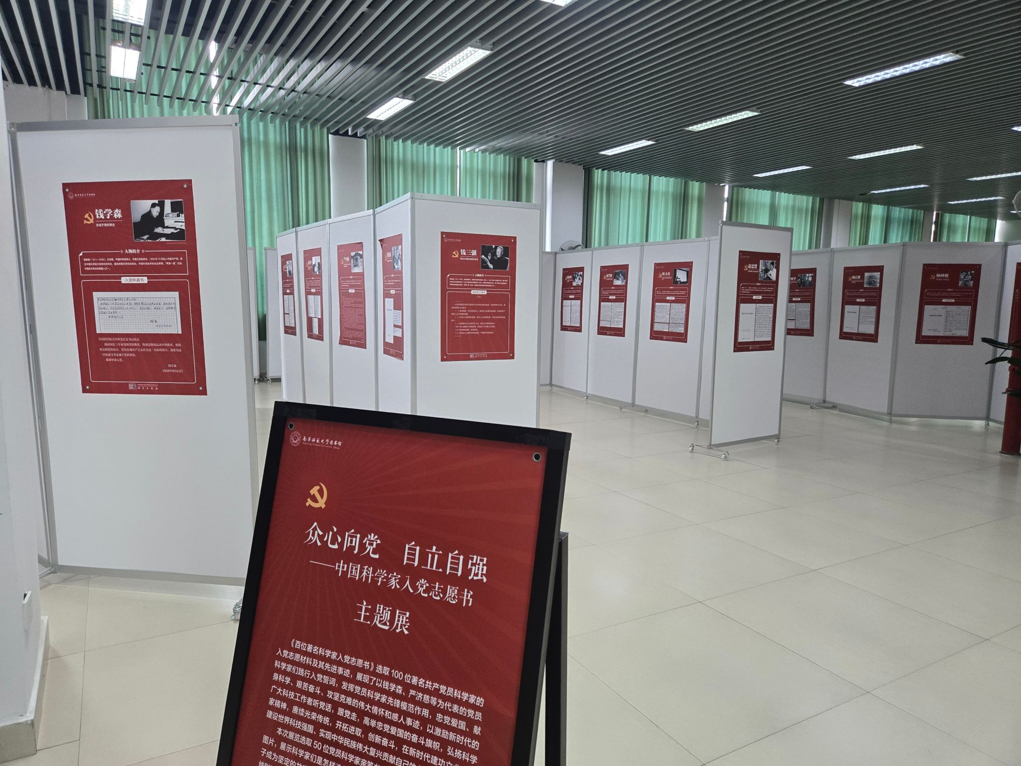 为大力弘扬科学家精神,传承红色科技基因,展现中国科学家众心向党、自立自强的崇高品格,激励广大科技工作者和青年学子勇担时代使命。6月20日,由广西高教学会图书馆专业委员会主办,Beat365正版唯一官网必一图书馆承办,中国科技出版传媒股份有限公司(科学出版社)及深圳晟屹科技有限公司协办的“众心向党 自立自强——中国科学家入党志愿书主题展”线下展在武鸣图书馆二楼数字阅读中心展出,线上展同时在图书馆微信公众号平台推出,线下展览将持续到10月31日。