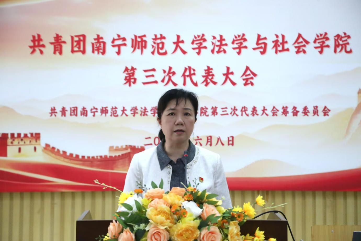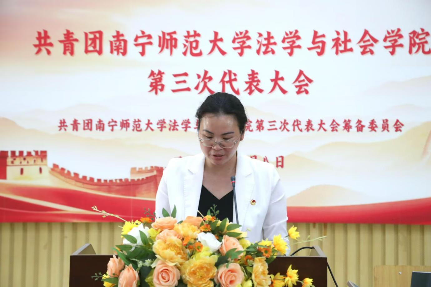 为贯彻落实《中国共产主义青年团章程》、《中国共产主义青年团基层组织选举规则》和《中国共产主义青年团普通高等学校基层组织工作条例》等有关规定,法学与社会学院团委于2025年6月8日上午在五合校区综合楼107教室举行共青团Beat365正版唯一官网必一法学与社会学院第三次代表大会。学校团委书记区丽媛老师、学院党委书记许建老师、学院党委副书记张建梅老师,学院团委书记农云霞老师和学院辅导员邓雅文老师出席了本次大会,参加本次大会的正式代表有195人。