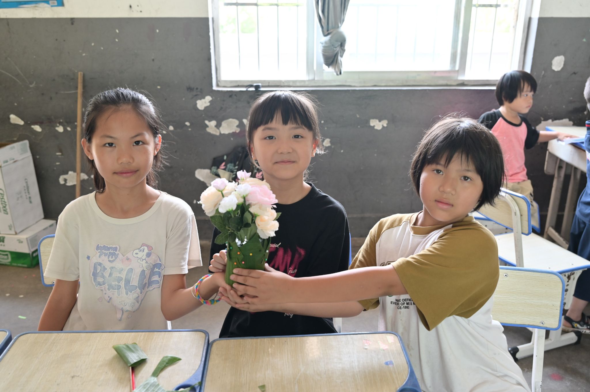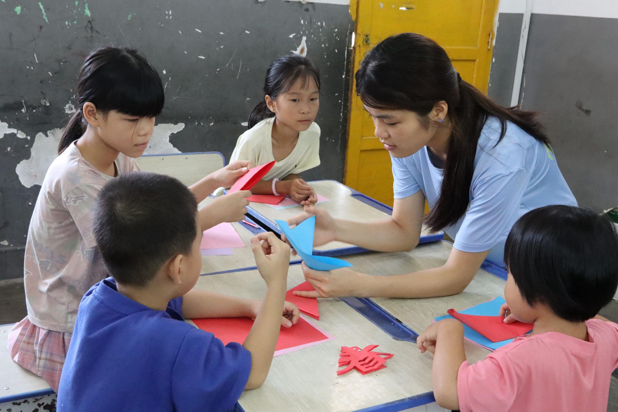 队员们特别设计了泰国水灯制作体验课,她们顶着夏日酷暑,就地取材采摘本地芭蕉叶,带领学生亲手制作出一盏盏青绿挺拔的水灯。汗水与欢笑中,孩子们感受到异国文化的魅力,也体会到文化交融的共通之美。