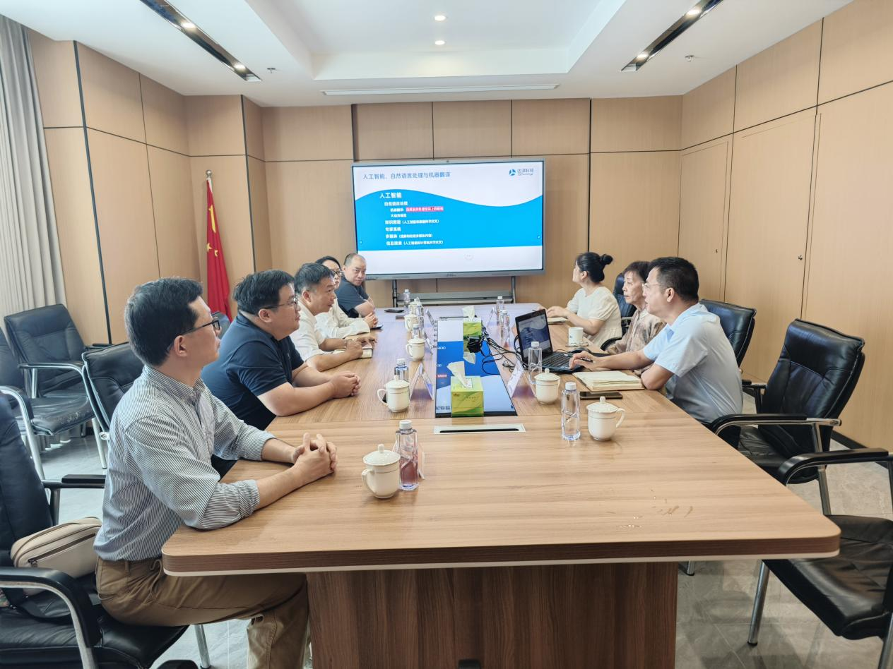 7月18日上午,新闻与传播学院院长梁颖涛教授带队赴广西达译科技有限公司开展“东盟多语种语料库建设——印尼语语料库采集、标注与应用”专题调研座谈会。广西达译科技有限公司董事长刘连芳、副总经理温家凯及公司项目团队成员出席座谈会。