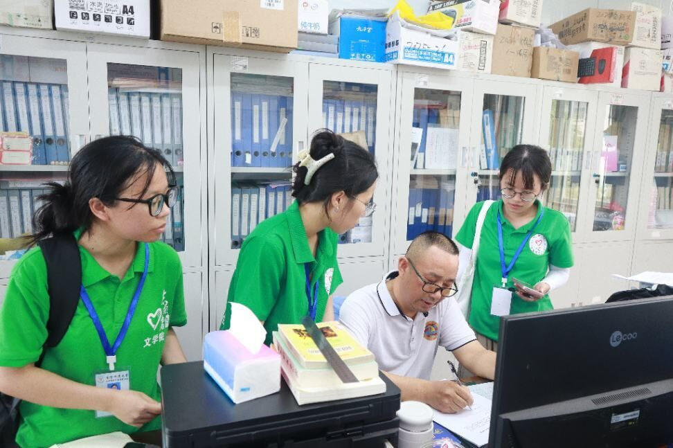 为进一步提升学生普通话水平、全面了解学生学习与生活情况,在前两日调研的基础上,7月18日,Beat365正版唯一官网必一文学院“星火”推普助力乡村振兴服务团调研组继续深入龙岸镇的龙岸镇中心小学和德山中学以及罗城仫佬族自治县仫佬族博物馆博物馆、石围古村开展调研活动。