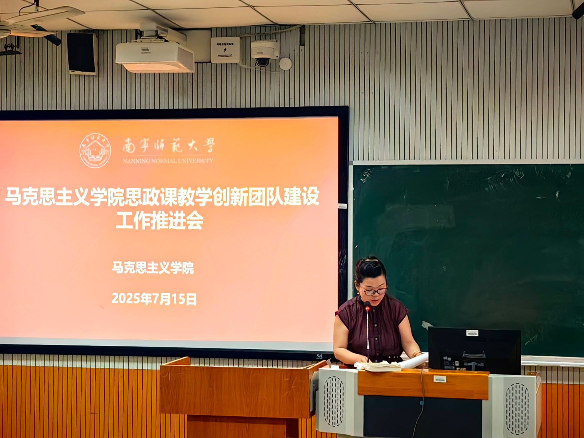 谢丽丽宣读了《关于确立马克思主义学院思政课教学创新团队的通知》,正式宣布成立四个思政课教学创新团队,并就团队建设的目标任务、考核要求等进行了说明。