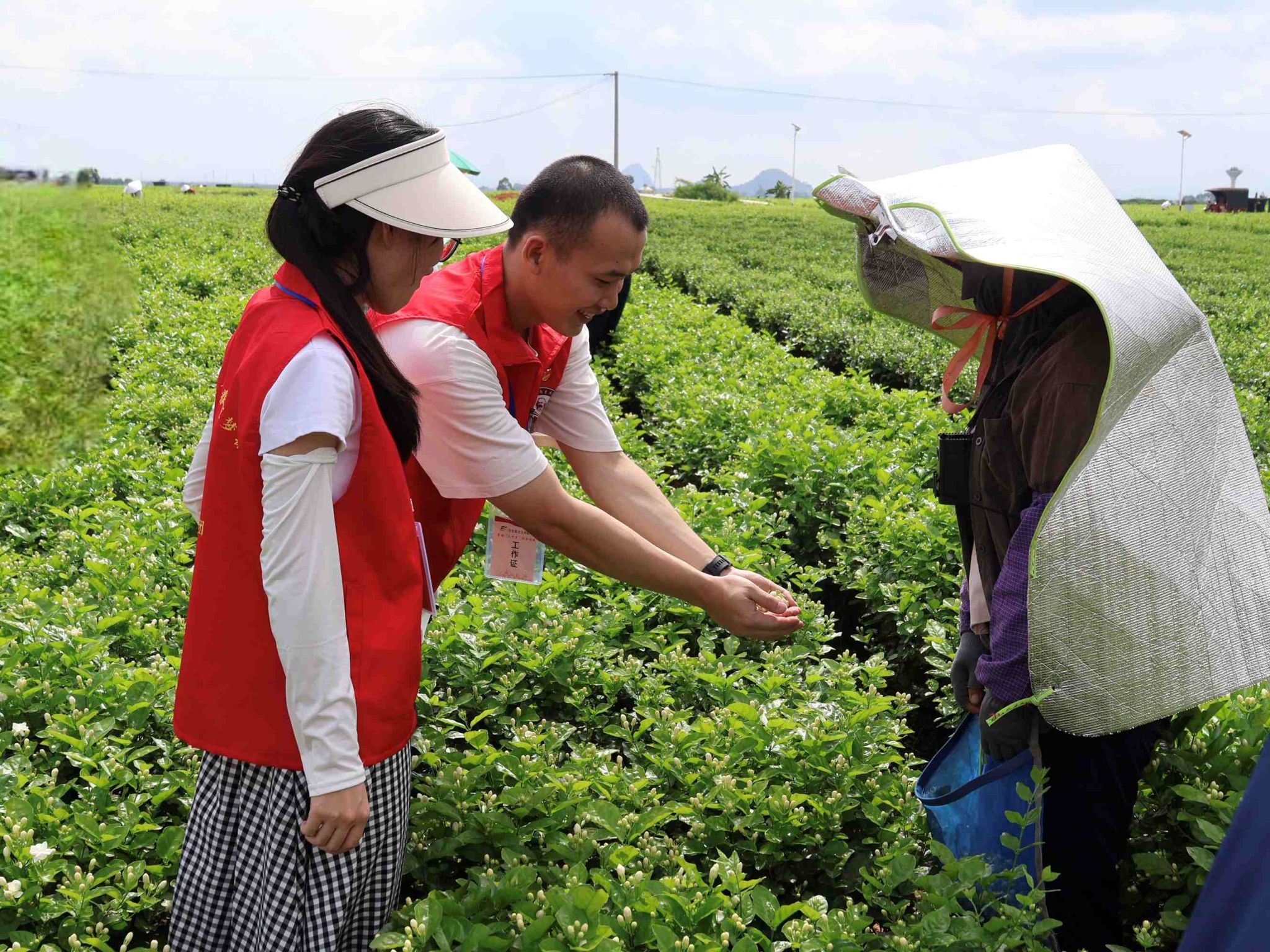 调研组聚焦横州市茉莉花特色产业,深入中华茉莉园、极萃园、茉莉花交易市场等场所,通过实地走访、与从业者访谈、收集市场数据等方式,全面调研茉莉花全产业链。通过调研,志愿者们深刻了解产业发展的机遇与挑战,梳理出其与乡村振兴战略的契合点。他们深刻认识到,这一产业既是当地经济发展的支柱,也是文化传承创新的重要载体,为理解乡村振兴提供了生动可感的实践案例。
