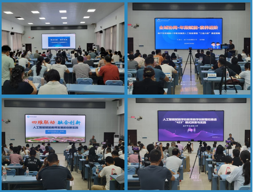 32所学校围绕本校在AI教育教学方面的实践成果进行现场展示与汇报,包括人工智能技术在课堂教学创新、校本课程开发、学生项目式学习、教师专业发展、学校管理优化等具体场景中的应用案例、实施过程、特色亮点及成效。活动邀请了校内外专家对展示交流的案例进行了点评和指导,促进了校际间人工智能教育教学经验的共享与协同发展。
