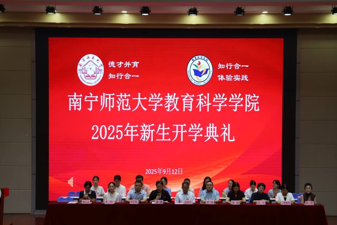 教育科学学院于9月12日下午在五合校区文综114报告厅举办了2025年新生开学典礼。学院领导班子、院长助理、各系主任、各新生班级班主任、学工行政人员和全体2025级新生出席活动。
