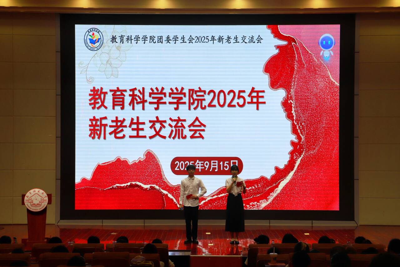 为了帮助新生融入校园生活,了解学院团委学生会部门和特色社团,教育科学学院于9月15日晚在五合校区文综114报告厅举办了2025年新老学生交流会。