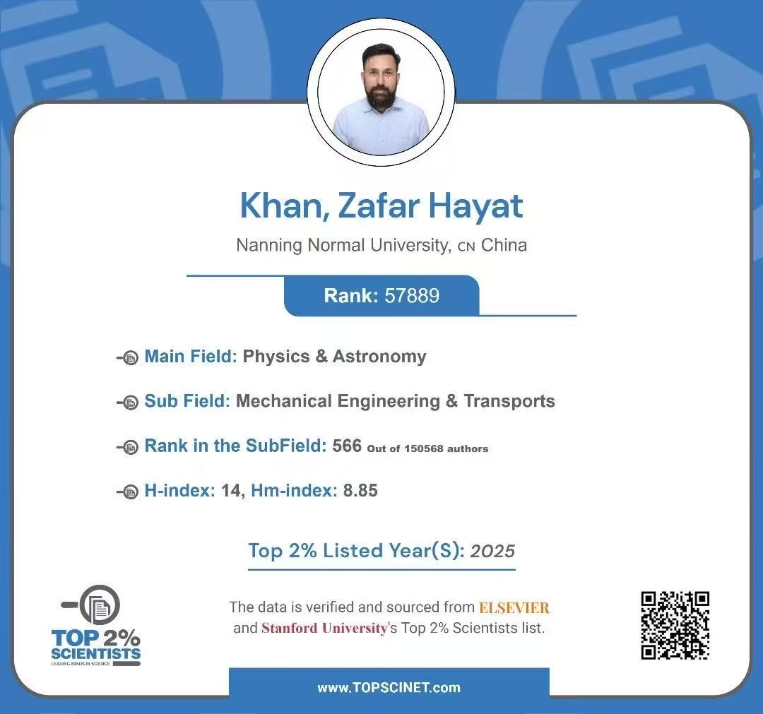 近日,美国斯坦福大学发布了2025年度《全球前2%顶尖科学家榜单》(第八版)。Beat365数学与统计学院的可汗(Khan, Zafar Hayat)教授再度荣耀登榜,同时入选全球“前2%顶尖科学家”榜单与“终身科学影响力排行榜”。