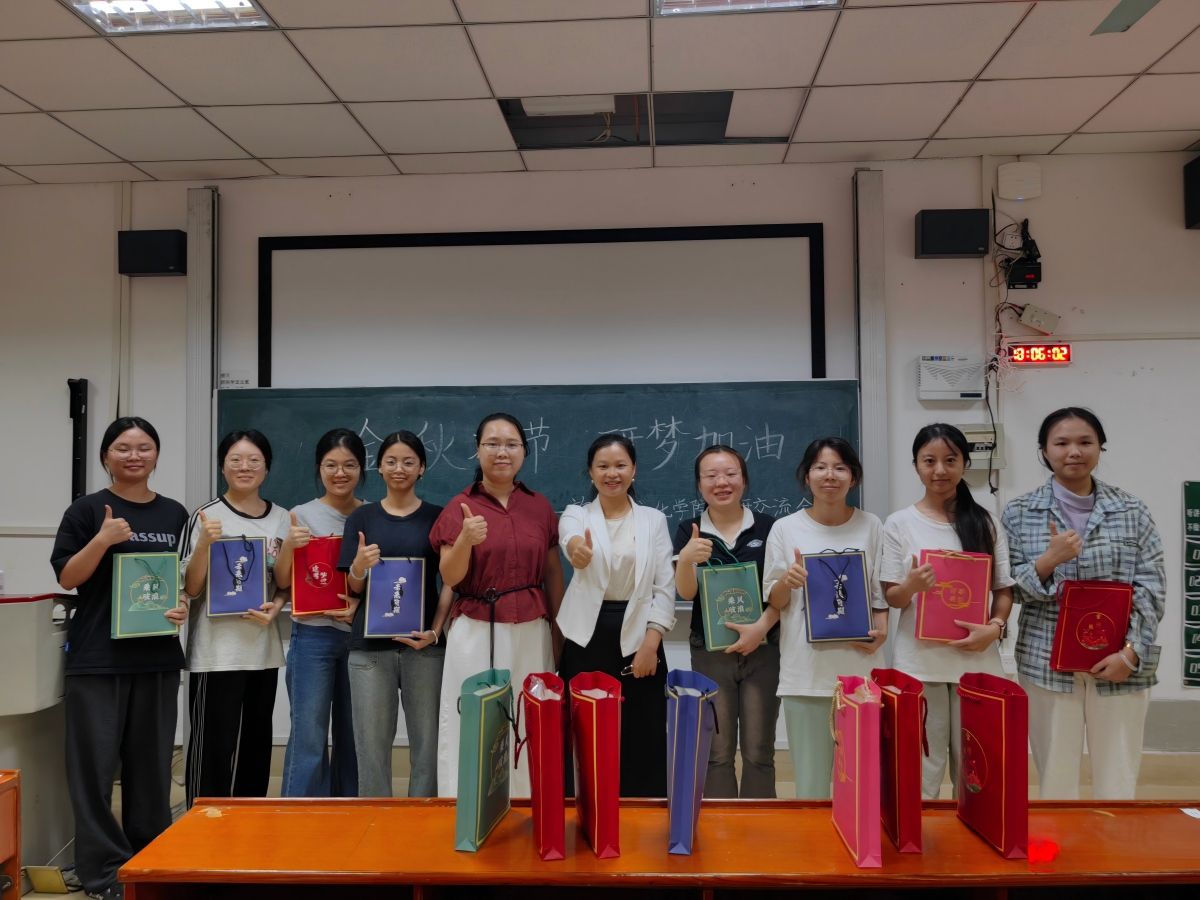 活动现场氛围温馨热烈,学院为每一位参会的考研学子精心准备了充满祝福与期许的暖心礼物:印有“金榜题名”“逢考必过”“未来可期”等励志字样的笔记本,既方便学子记录备考要点,也寄托着学院对他们的美好祝愿;同时,还贴心送上中秋月饼,让学子们在紧张的备考之余,感受到双节的浓厚氛围与学院的关怀暖意。拿到礼物的学子们脸上洋溢着惊喜与感动,纷纷表示这份礼物不仅实用,更让他们感受到了学院的重视与温暖,备考的疲惫也随之消散不少。