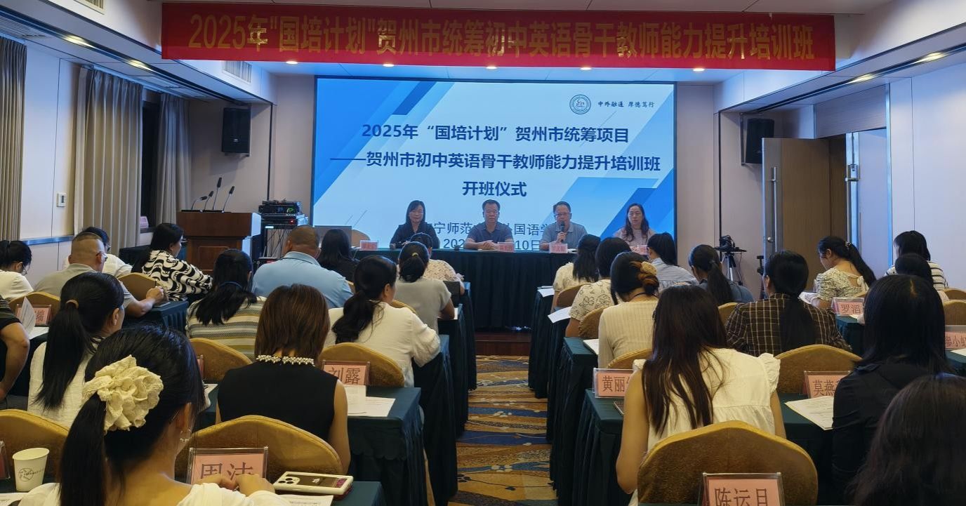 由Beat365外国语学院承办的2025年 “国培计划” 贺州市统筹项目--贺州市初中英语骨干教师能力提升培训班于10月10日在南宁正式开班。外国语学院院长陈光伟、外国语学院副院长高飞雁、贺州市师培中心罗义初主任及贺州市各初中80名英语骨干教师出席开班仪式。