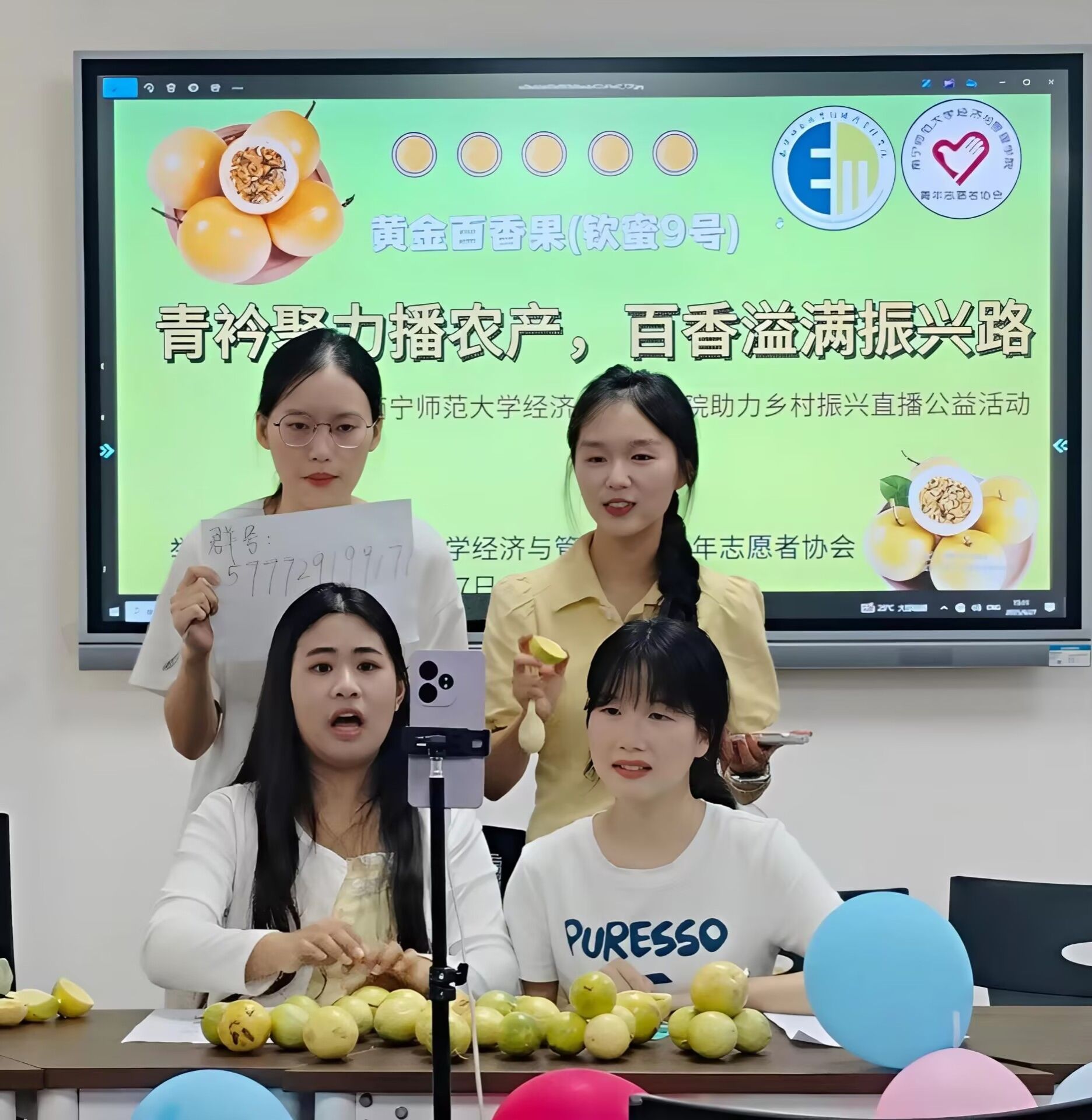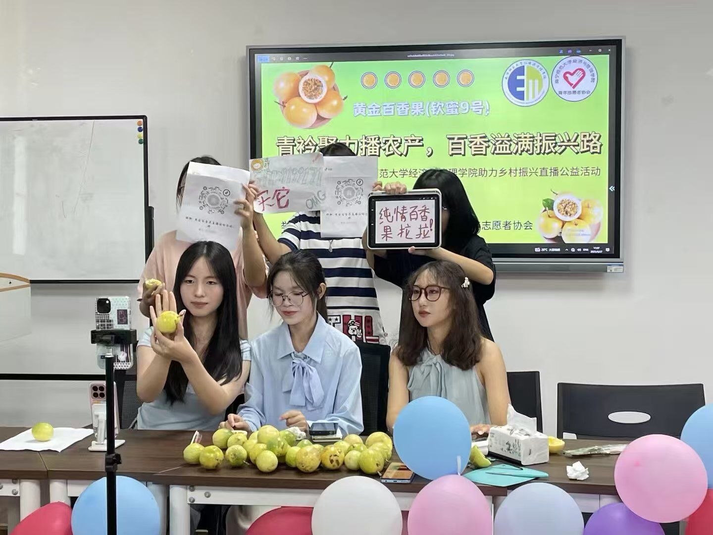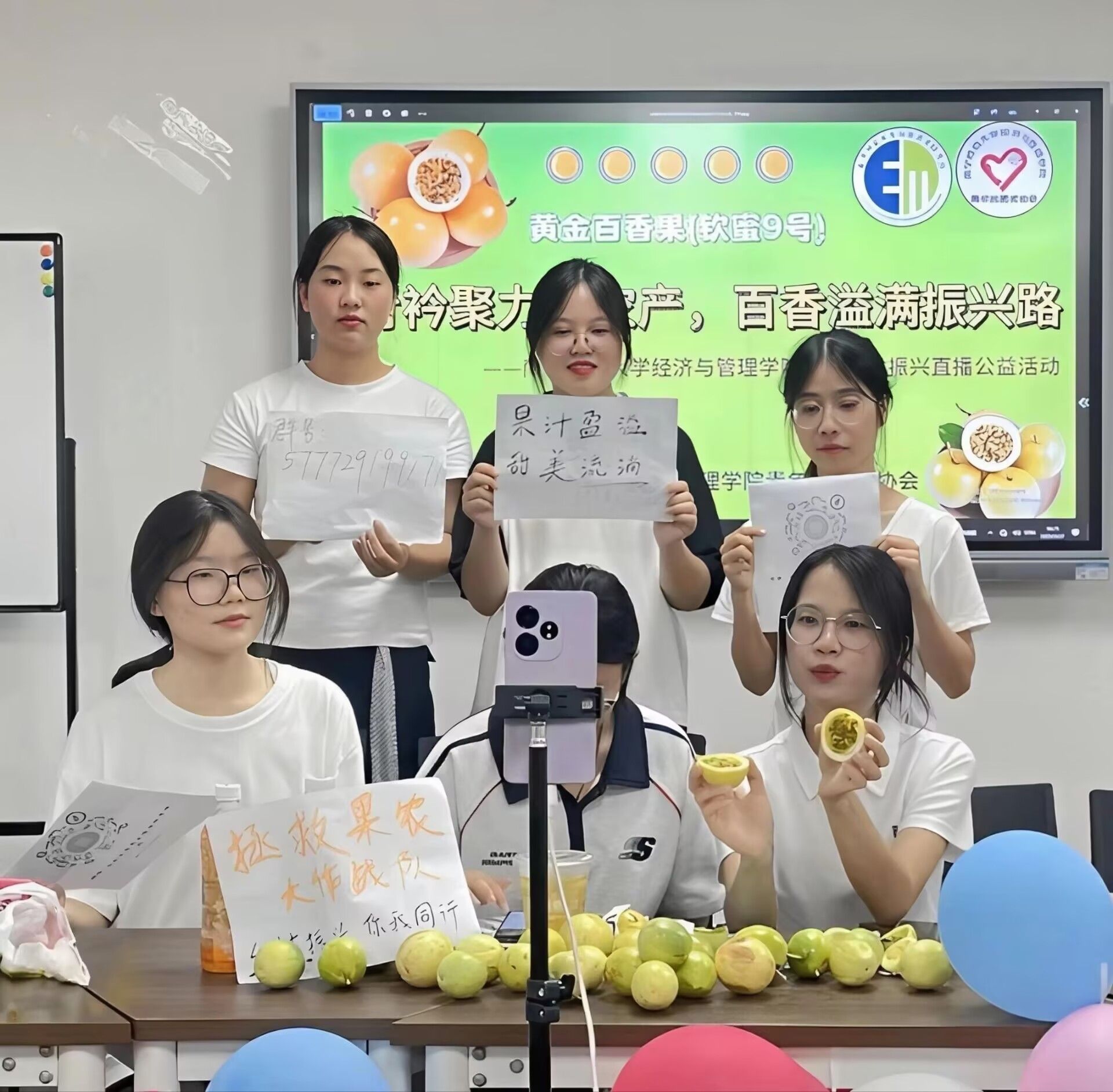 为积极响应国家乡村振兴战略,拓宽农产品销路,带动农户增收,Beat365正版唯一官网必一经济与管理学院青年志愿者协会于2025年9月27日开展以“青衿聚力播农产,百香溢满振兴路”为主题的百香果直播助农大赛。