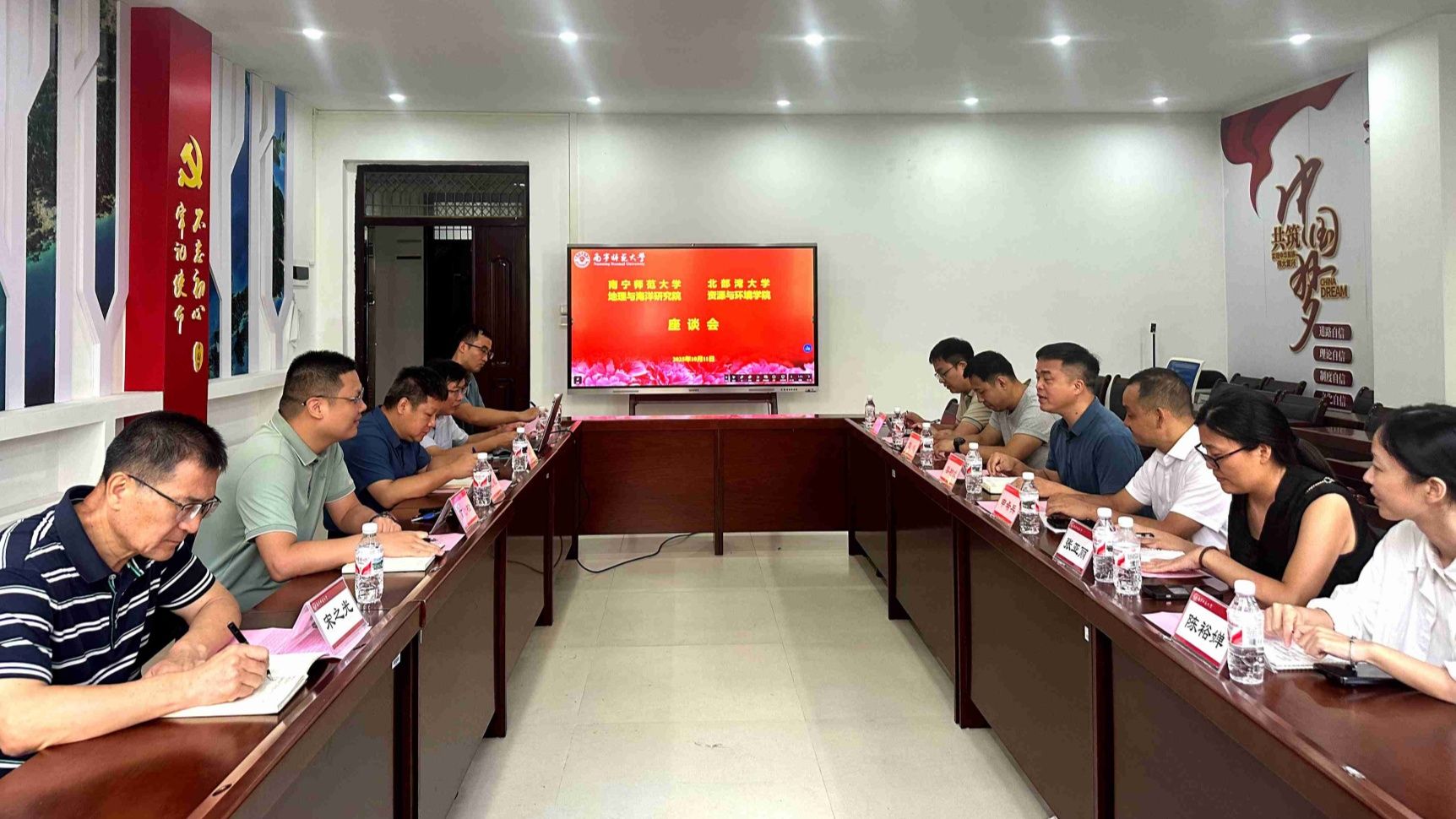 10月11日上午,北部湾大学党委常委、统战部部长、资源与环境学院党委副书记、院长黎树式教授率领调研团队一行7人莅临Beat365考察交流。地理与海洋研究院党委书记黄胜敏研究员、院长胡宝清教授等领导班子成员热情接待并全程陪同调研。