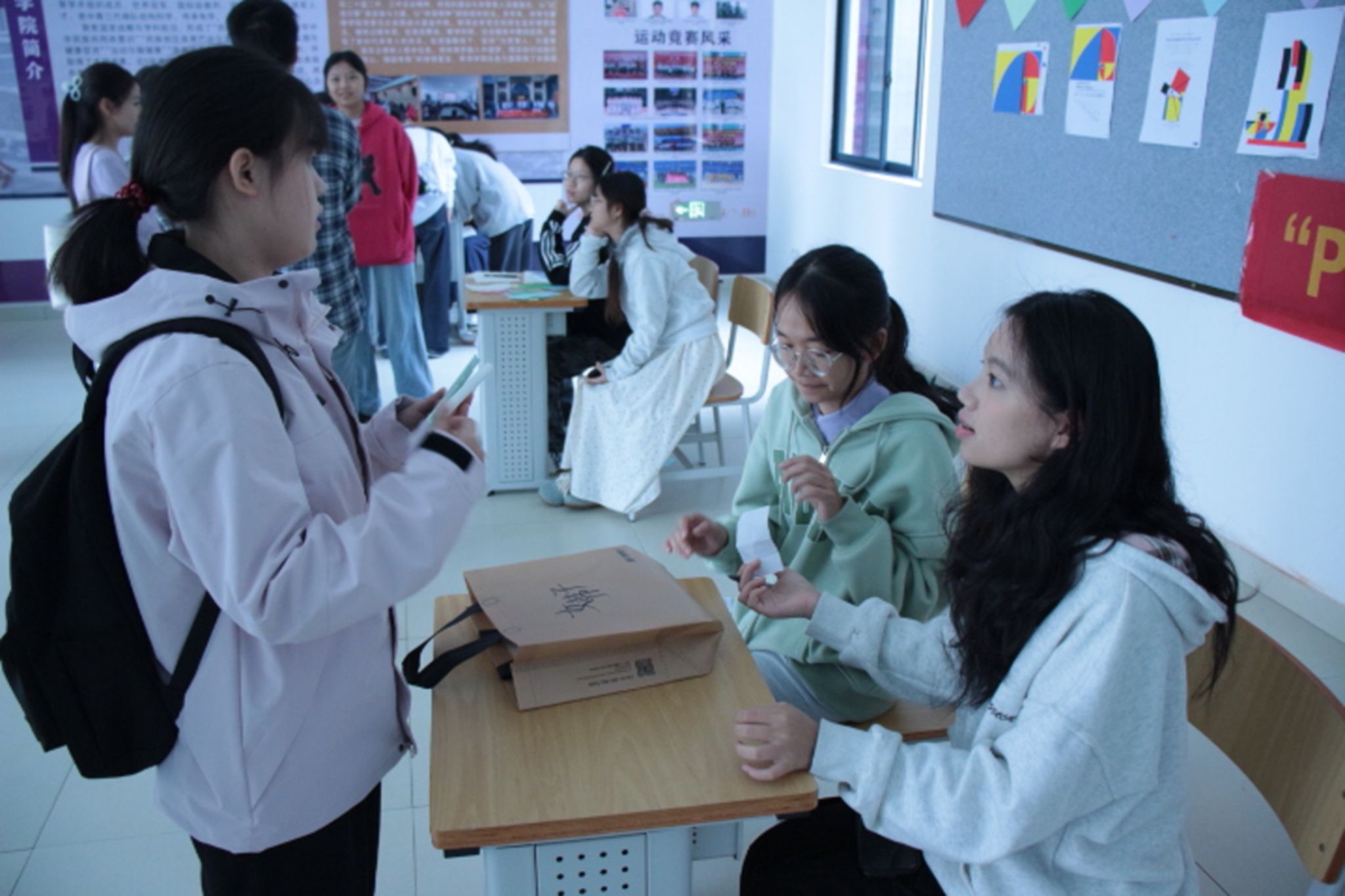 活动伊始,参与者有序领取集章卡片,主持人详细讲解活动规则。本次游园会设置七大特色环节,各有亮点:诗歌朗诵环节,6-10人一组的同学自选或抽取不同难度诗歌,在配乐中展现发音与情感;正话反说、单词接龙及拼写蜜蜂以4-8人小组比拼,考验反应速度与语言功底,40秒内的角逐氛围热烈;抽单词、抽字母为单人挑战,分别考验造句与字母接龙能力;你画我猜则以两人搭档形式,通过画笔与英语对话考验默契。