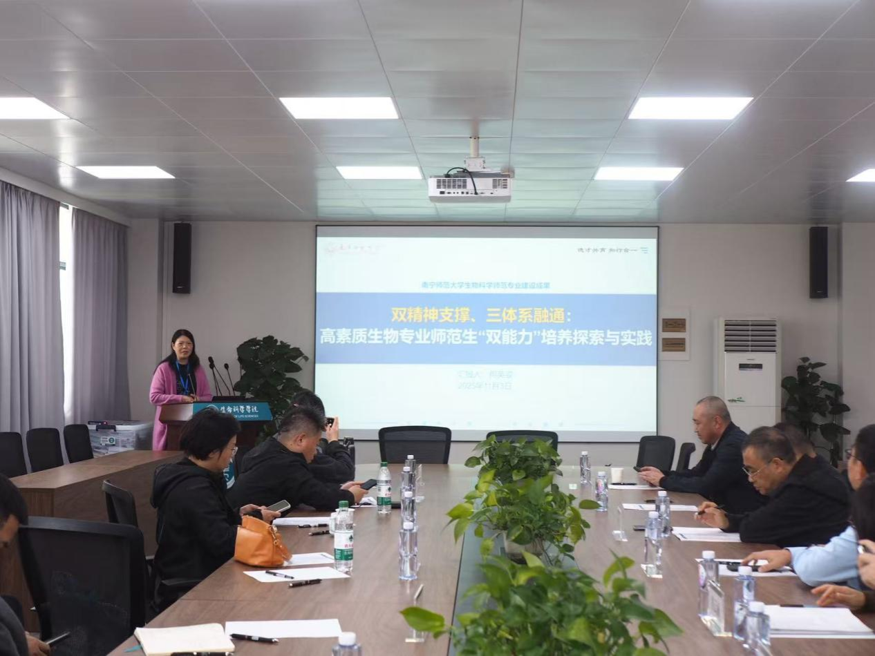 Beat365环境与生命科学学院院长何英姿教授应邀参会并作了“双精神支撑、三体系融通:高素质生物专业师范生‘双能力’培养探索与实践”的报告。与会的各院校代表围绕生物学教育未来发展方向、教育教学协同改革与创新、卓越生物学教教师培养等展开交流与讨论。