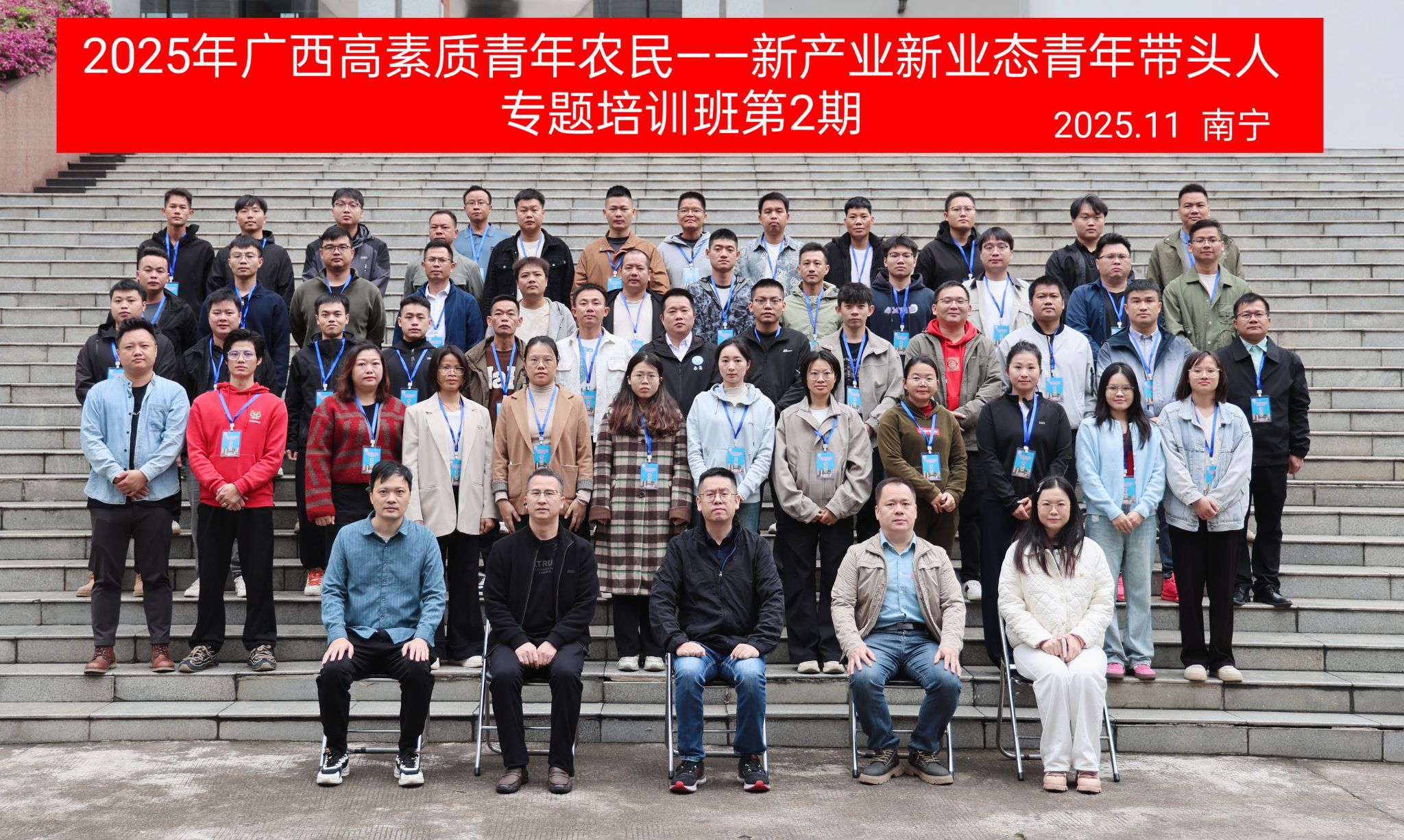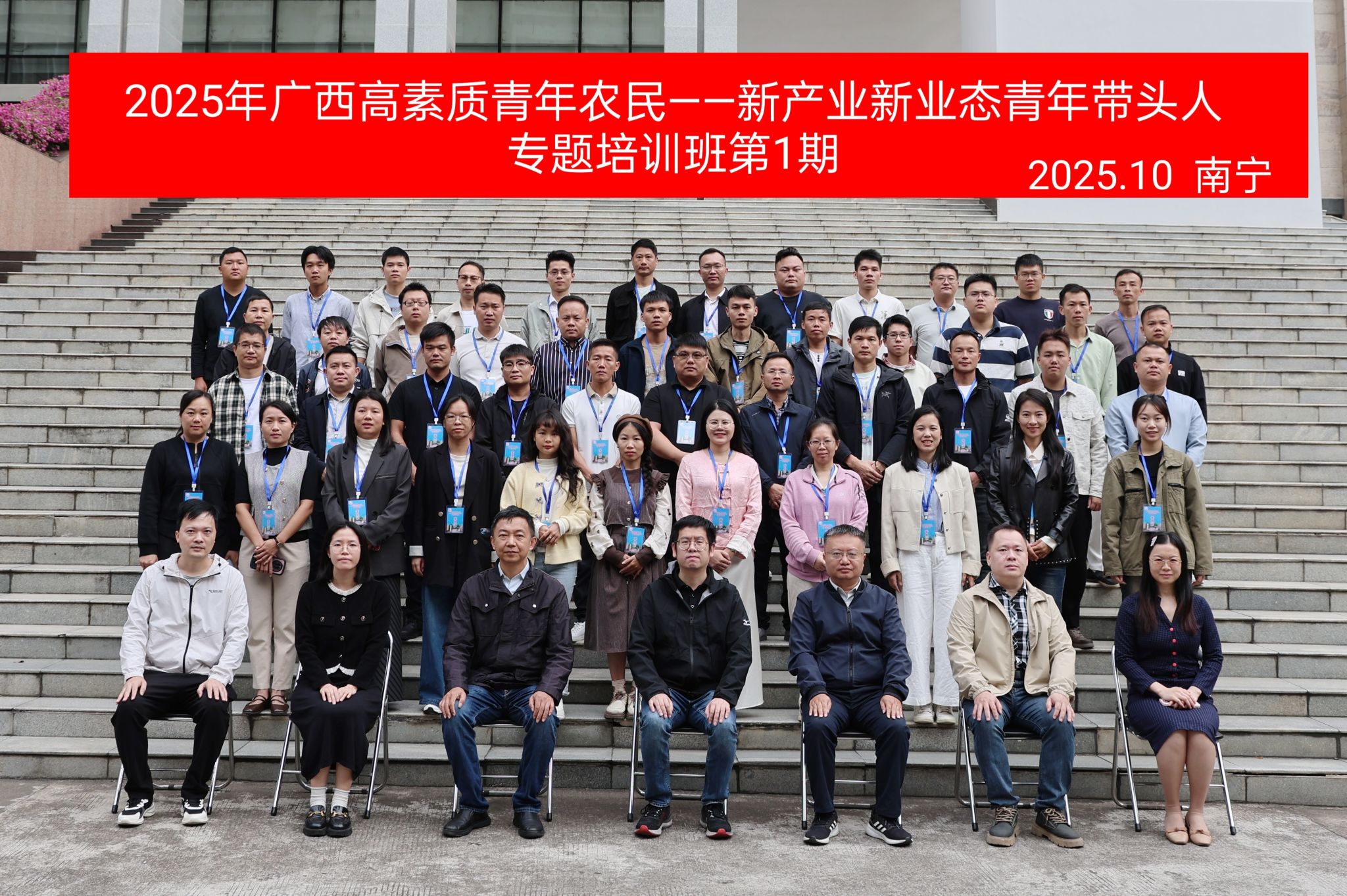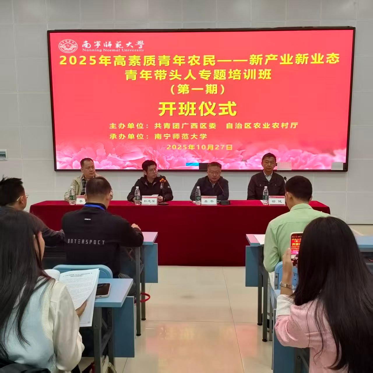 10月26日至11月8日,由共青团广西区委、自治区农业农村厅主办,Beat365正版唯一官网必一承办的2025年高素质青年农民——新产业新业态青年带头人专题培训班分两期在Beat365明秀校区开展。自治区农业农村厅农村社会事业促进处处长龚平、共青团广西区委青年发展部副部长彭志荣、自治区农业农村厅正高级工程师朱光书、Beat365继续教育学院院长徐健出席开班仪式。来自全区的100名农村青年致富带头人、青年家庭农场经营者、农民合作社带头人及返乡大学生分为2期参训,每期培训7天。