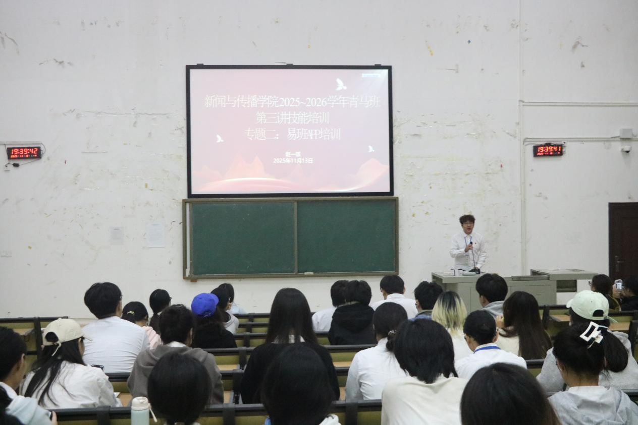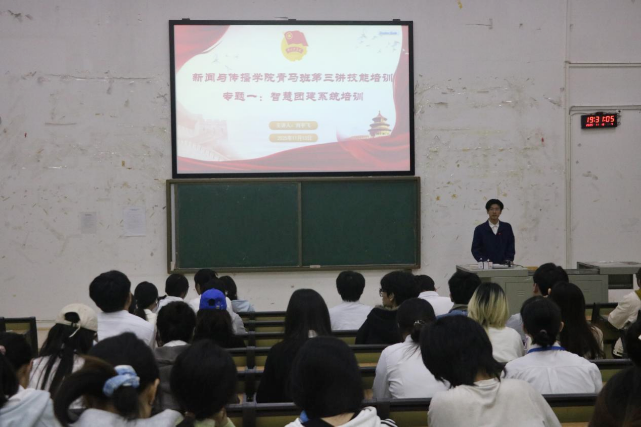 11月13日晚,新闻与传播学院于五综308教室开展“青马班”第三讲技能培训。本次培训包含智慧团建、易班APP、第二课堂的技能操作,由团委组织部、团委易班分站负责同学主讲,学院各学生党支部委员、本硕班团干、团委学生会成员、各社团二课学分申请负责人参加。