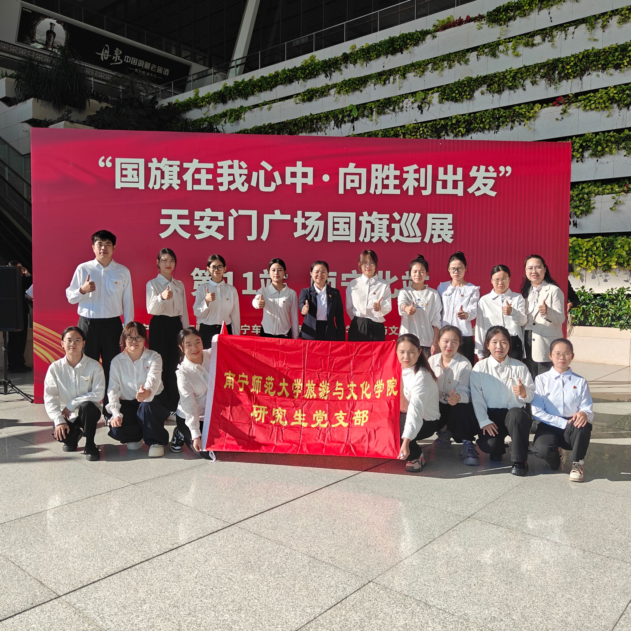 为深入学习贯彻党的二十届四中全会精神,厚植研究生党员爱国主义情怀,强化党建联盟单位协同育人实效,11月14日上午,旅游与文化学院党委副书记黄珍、研究生党支部书记陈春容带领支部成员,赴南宁北站落客平台,与南宁车站、南宁北站派出所等党建联盟单位共同参与“国旗在我心中——向胜利出发”天安门广场国旗巡展第11站(南宁北站)爱国主义教育活动,在庄重仪式与深度互动中传承红色基因,凝聚旅文学子奋进力量。