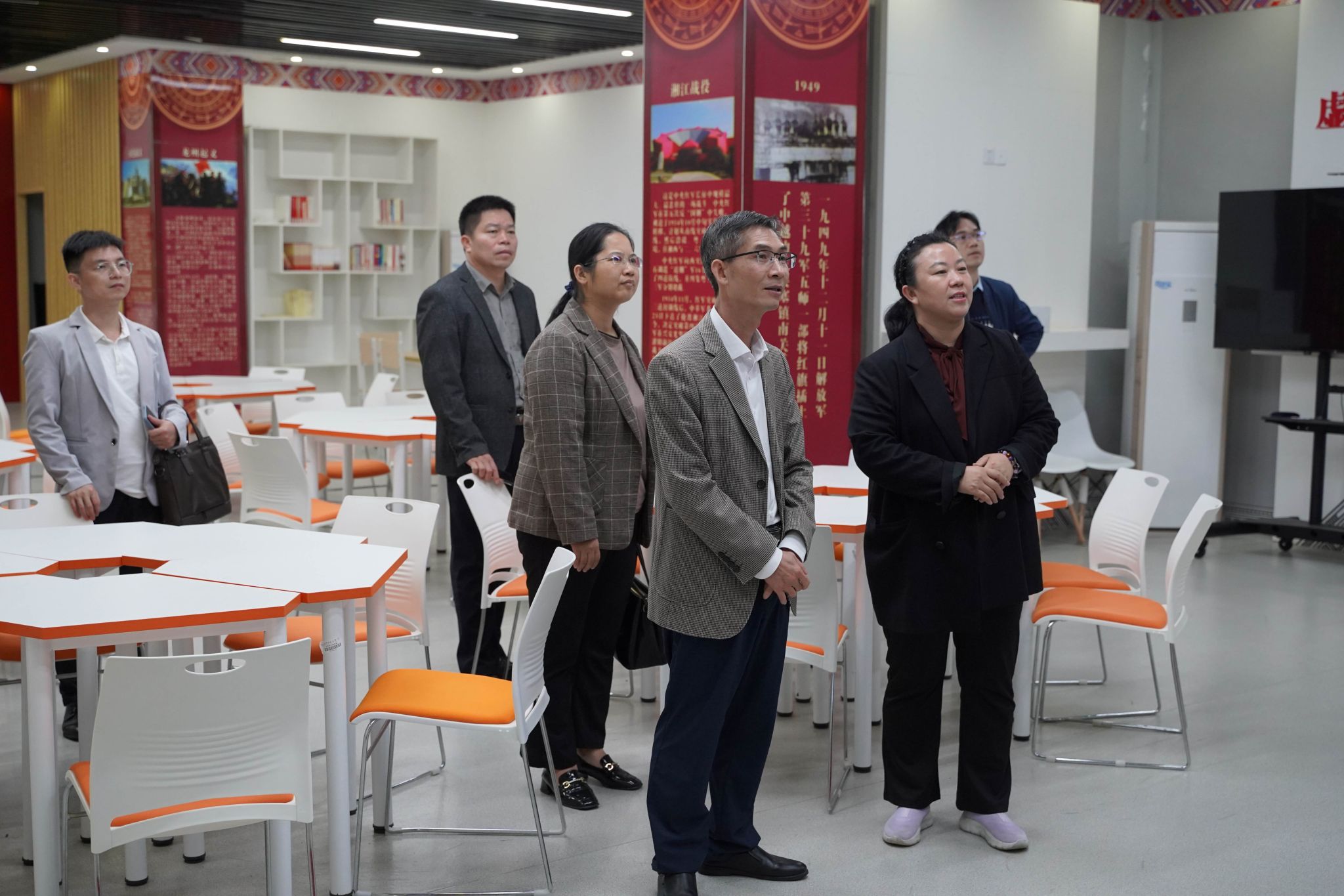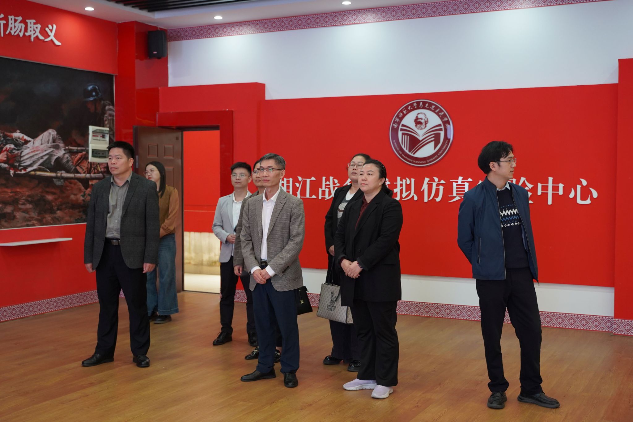 期间,李乐军一行先后参观了马克思主义理论教育广场、党史育人画廊、科学社会主义发展史教育馆及广西新时代爱国主义教育虚拟体验中心、湘江战役虚拟仿真实验中心等特色文化育人教学场所。