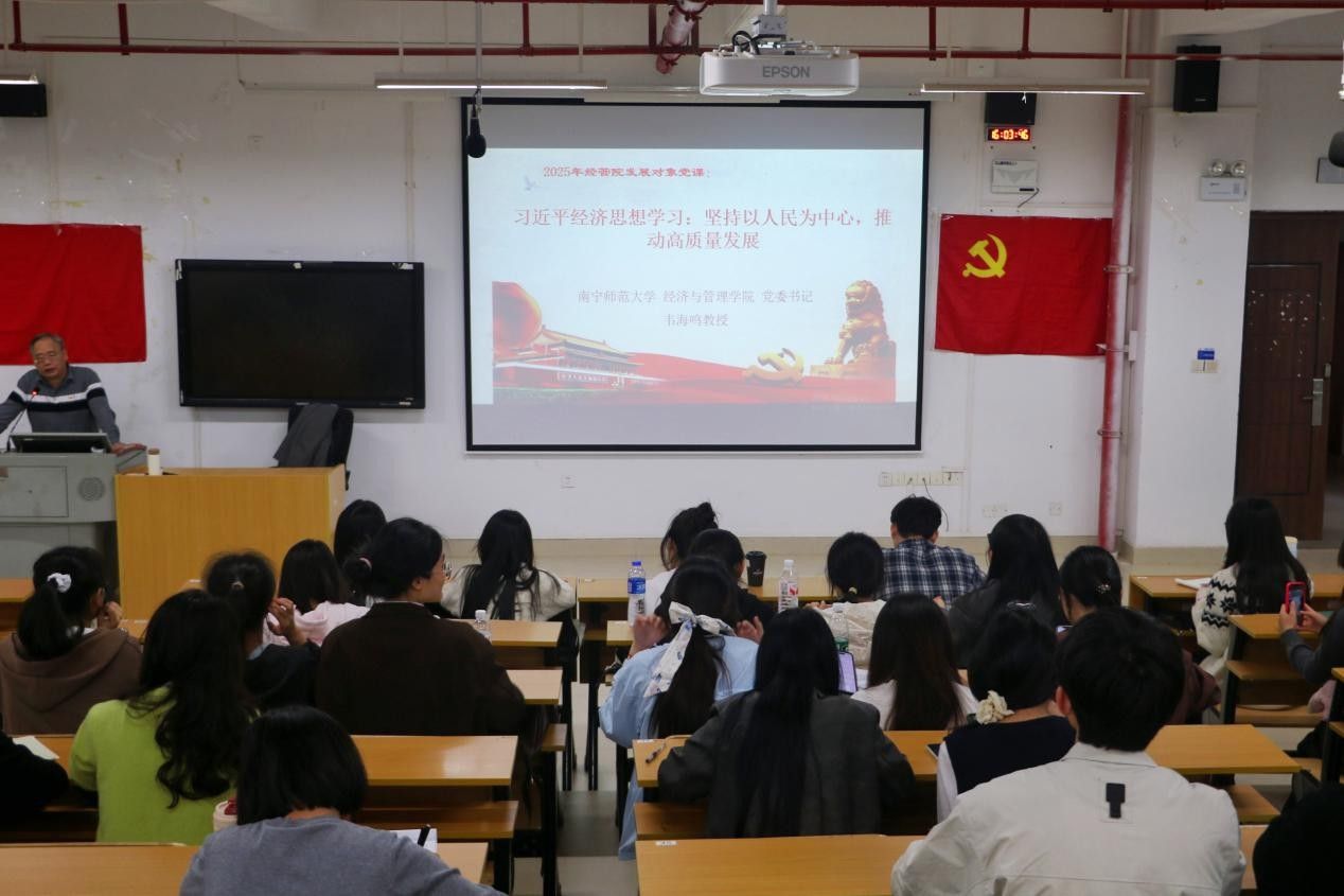 11月11日下午,经济与管理学院在文理综合楼文楼开展第七十二届发展对象专题党课,由学院党委书记韦海鸣、院长何玲玲、党委副书记谢统义依次授课,学院全体党员以及发展对象参与学习。
