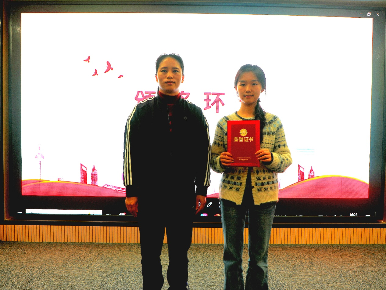 本次大赛的评审环节严格规范,评委团由学院教师组成,围绕PPT 内容完整性、创意创新性、视觉设计协调性以及选手讲解表现力四大核心维度进行综合打分,确保评选结果公平、公正、公开。经过紧张的评审与分数核算,最终评选出一等奖 1 名、二等奖 1 名、三等奖 2 名及优秀奖 5 名。随后的颁奖环节,由学院的韦链老师和陈宗书老师为获奖选手逐一颁发荣誉证书。此外,韦链老师还对本次大赛进行总结点评,既高度肯定全体参赛选手的精心准备与出色表现,认为作品既展现了扎实的PPT 制作技能,又传递了深厚的红色文化情怀。