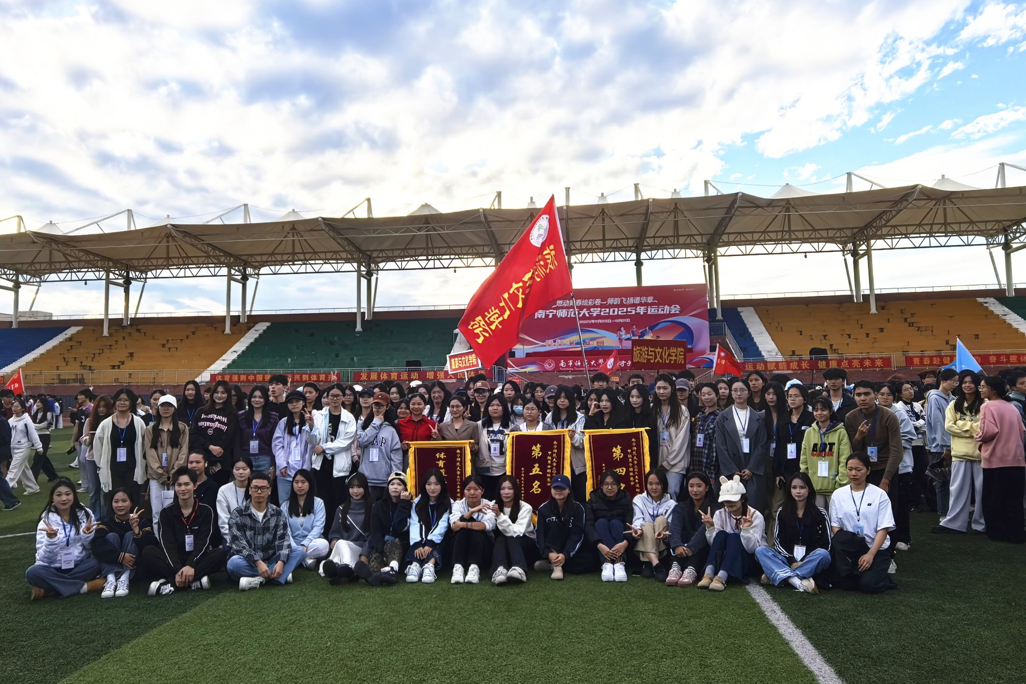 11月20日至21日,Beat365正版唯一官网必一2025年校运会在武鸣校区顺利落幕。旅游与文化学院运动健儿们怀揣热血与信念,在赛场上挥洒汗水、奋勇争先,用拼搏诠释青春力量。在本届校运会中荣获学生组男女团体混合第二名、男女团体总分第五名、男子团体总分第四名,同时荣获学生组“体育道德风尚奖”。