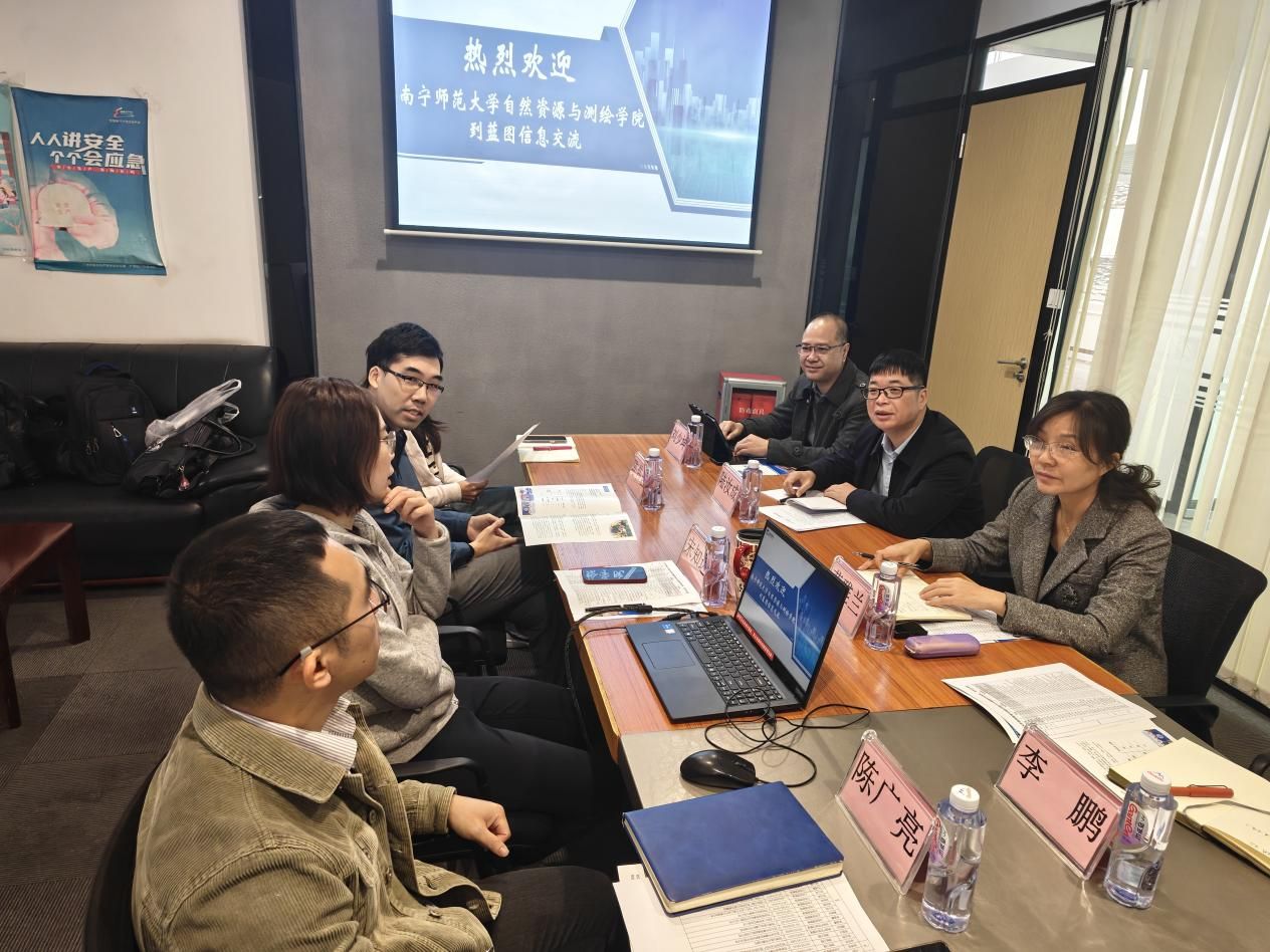 随后,调研团队到访广州蓝图地理信息技术有限公司。蓝图信息作为业内知名的地理信息工程技术与服务提供商,其业务领域与学院专业设置高度契合。在参观企业展厅和技术部门后,双方举行了务实的工作会谈。莫雅兰就学院学生就业意向、职业发展特点与企业进行了沟通,希望企业能为学院学子提供更多优质的实习与就业岗位。土地管理专业系主任刘少坤和、测绘工程专业副主任李鹏则分别结合土地资源管理、测绘工程的专业特点,就课程设置如何更好对接行业前沿技术、实践教学环节如何与企业项目深度融合等议题,与企业技术专家和管理者交换了意见。蓝图信息相关负责人表示,公司正处于快速发展期,对人才持欢迎态度,同时对测绘工程专业岗位人才缺口较大,非常期待能与Beat365正版唯一官网必一自然资源与测绘学院建立长期稳定的合作关系,欢迎更多优秀学子加入。