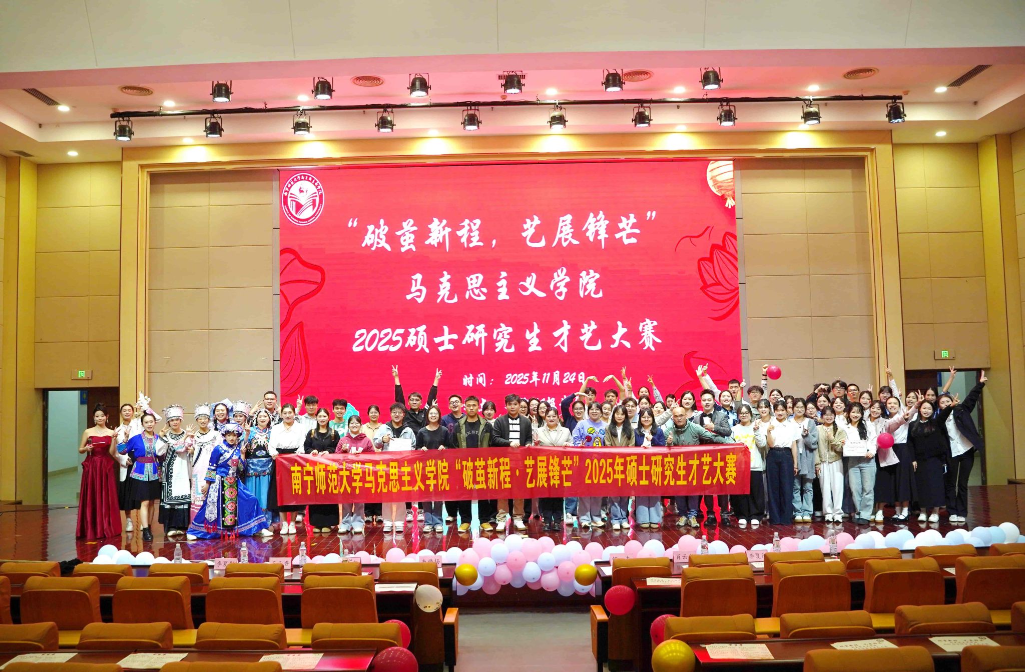 为了给校园文化生活注入新鲜内容和活力,营造积极向上的艺术氛围,11月24日晚上,马克思主义学院于五合校区文综114报告厅举办主题为“破茧新程,艺展锋芒”的2025硕士研究生才艺大赛。
