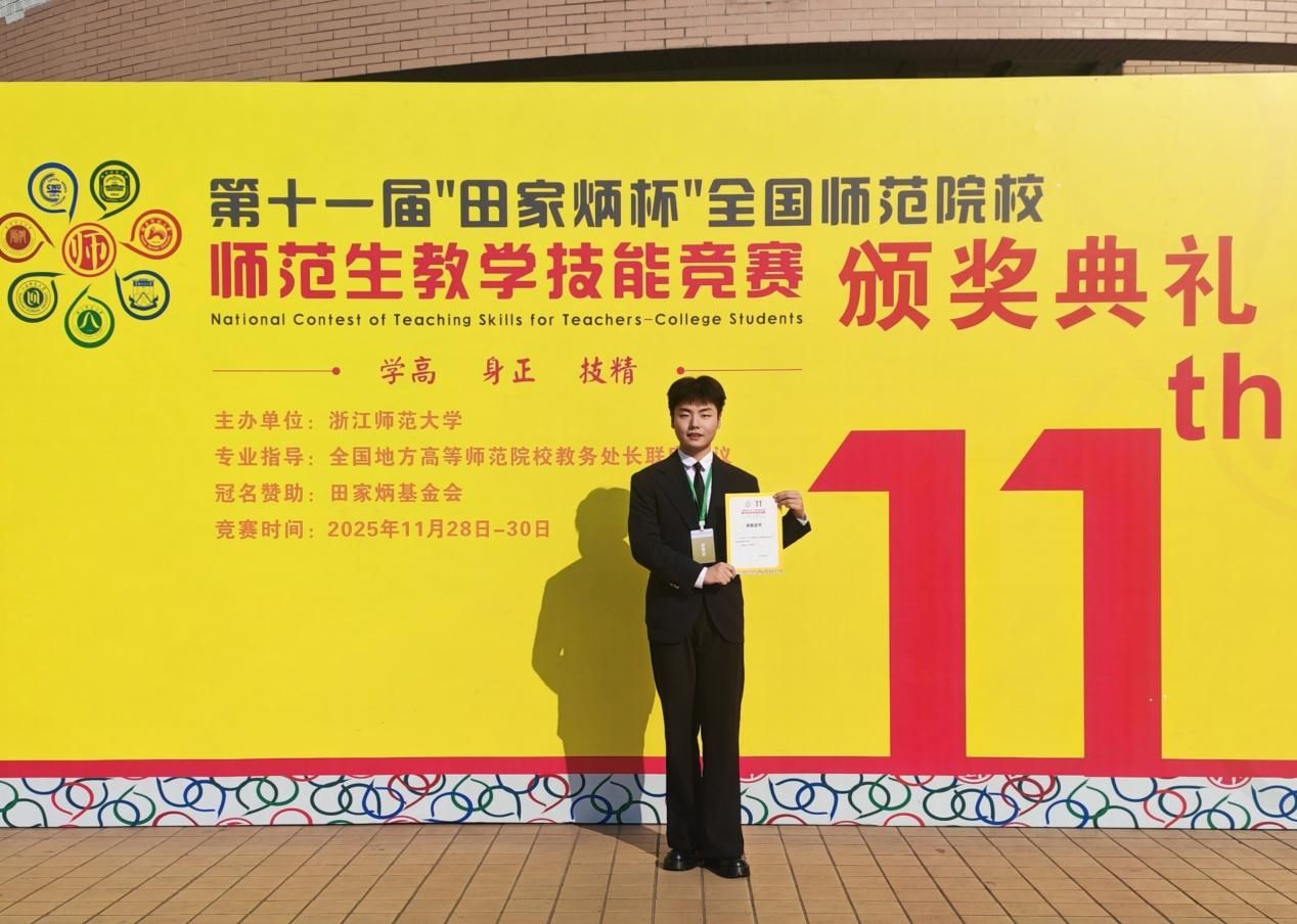 11月29日至30日,第十一届“田家炳杯”全国师范院校师范生教学技能竞赛决赛在浙江师范大学举行。文学院2023级汉语言文学专业陶行知实验班聂佳星同学在指导老师黄铮、黄斌、王毅的悉心指导下,凭借扎实的专业素养与出色的教学表现,荣获全国一等奖。