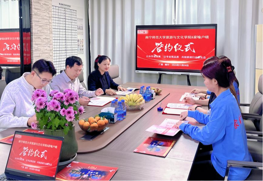 11月26日,旅游与文化学院与“家喻户晓”广西总部校企合作签约暨就业实习基地挂牌仪式在“家喻户晓”广西总部办公场地顺利举行。旅游与文化学院院长段文军、党委副书记黄珍、辅导员甘恒一行与“家喻户晓”广西总部企业负责人齐聚现场,共同见证这一产教融合的时刻。