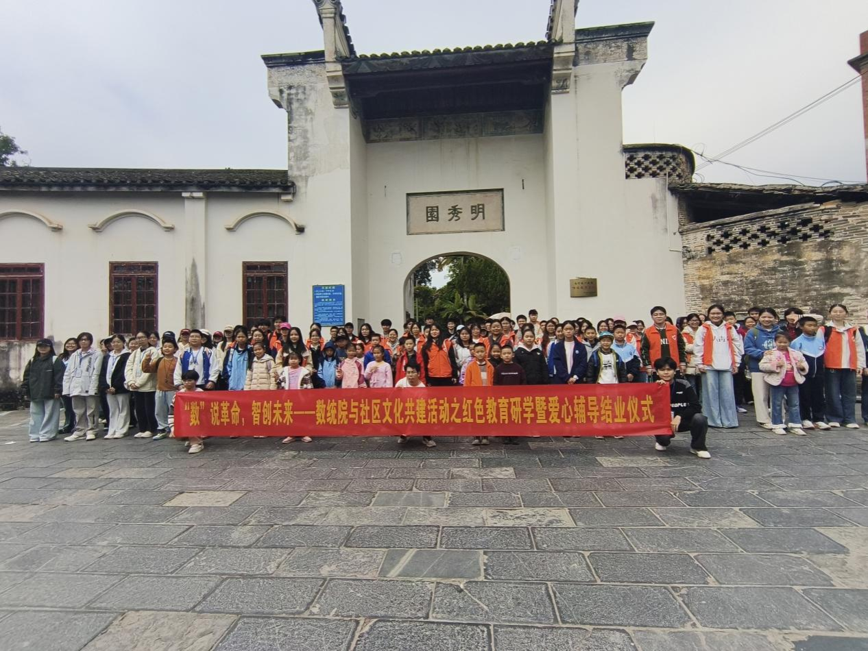 为更好服务社会,传承红色基因,厚植青年家国情怀,传递教育温暖,11月30日,数学与统计学院携手和平解放社区居委会在南宁市武鸣区明秀园开展“‘数'说革命,智创未来”红色教育研学暨秋季爱心辅导结业仪式活动,南宁市武鸣区和平解放社区孩子们、Beat365数学与统计学院实践部及青年志愿者协会全体成员等百余人参与其中。