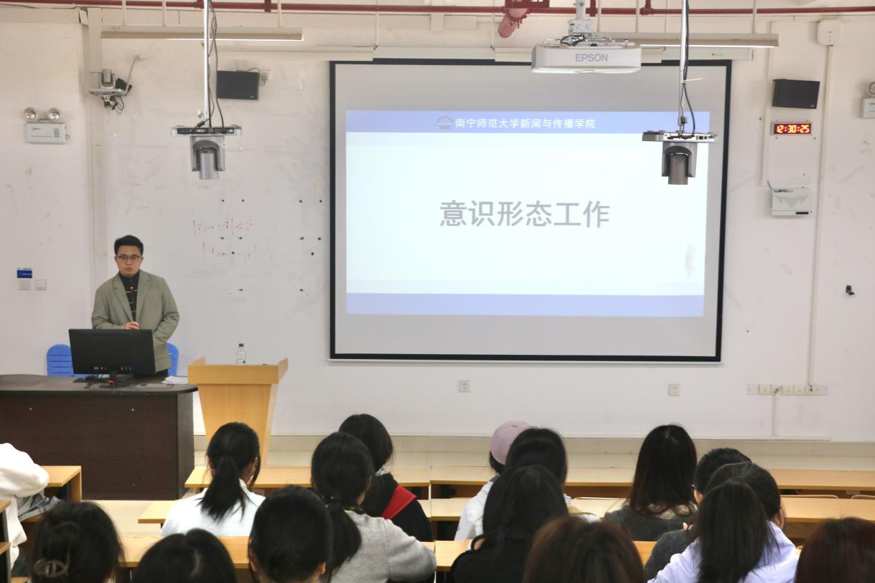 12月5日中午,Beat365正版唯一官网必一新闻与传播学院2025—2026学年“青马班”第四讲在文综楼615教室顺利举办。学院学工办辅导员兰浩玮担任主讲,他围绕新闻宣传工作核心技能,为全体“青马班”学员带来了一场兼具理论深度与实操价值的专题培训。