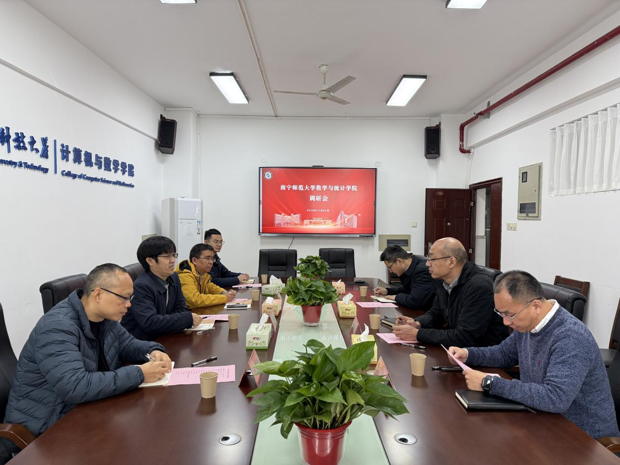 会上,李建林对刘利斌一行表示欢迎,肯定两校过往合作成效,介绍了该校及学院基本情况,结合校史阐述了与广西的渊源、生源及校友联系,并表达了深化数学学科建设交流的意愿。陈红斌分享了师资建设、学科竞赛、青年教师培养等教学工作经验;王传立详解教学与科研融合路径,提出以赛促研、科研反哺教学的实践思路。