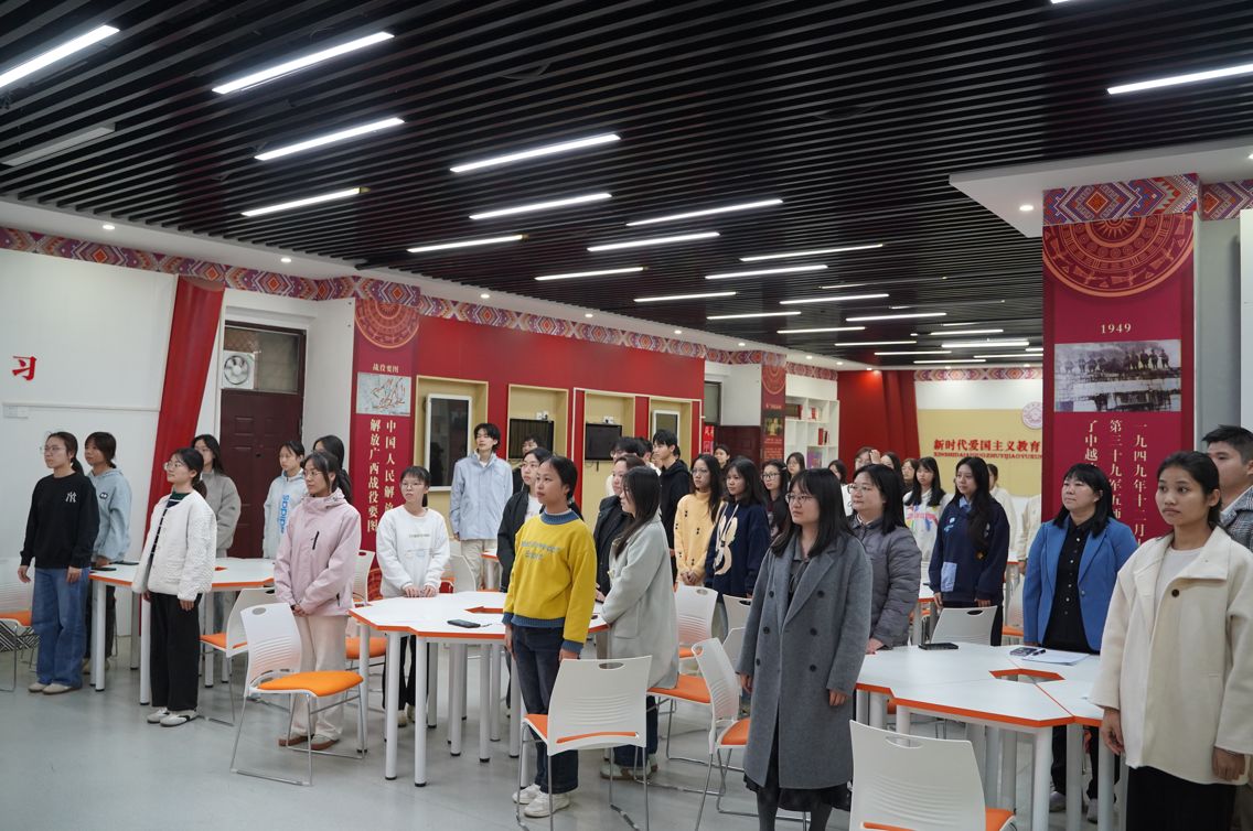 为深入学习贯彻习近平法治思想,普及宪法、民法典等核心法律知识,解读新中国宪法发展历程与根本地位,展现新中国成立76年来特别是党的十八大以来全面依法治国的历史性成就,马克思主义学院于12月4日上午在五合校区8栋B座209教室组织师生参加2025年教育系统“宪法晨读”活动。学院党委书记李玲、团委书记韦旖扬及师生代表们共同参与活动,沉浸式感受宪法精神。