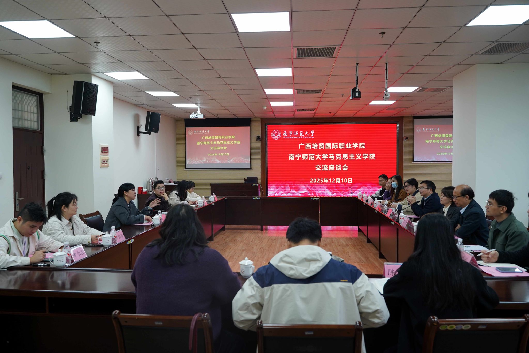 为进一步推进高校思想政治教育协同发展,12月10日上午,广西培贤国际职业学院党委书记罗必本一行到访马克思主义学院,学院党委书记李玲、副院长谢丽丽与教师代表参加交流活动。