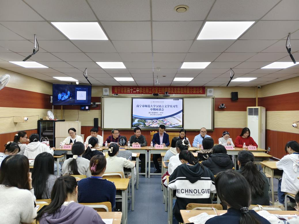 12月9日,文学院汉语言文学专业实习中期座谈会在南宁市第四十二中学召开。文学院副院长(主持行政工作)刘振平、南宁市第四十二中学副校长方鸿献,以及双方指导教师、实习生代表参与座谈,聚焦实习成效、剖析问题短板、明确成长方向。