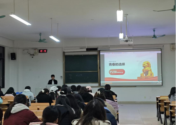 近日,美术与设计学院在武鸣校区美术楼202教室开展征兵宣讲会,旨在积极响应国家号召,深入推动大学生征兵工作,激发广大学子投身国防、报效祖国的热情。本次宣讲会吸引了学院各专业70余名怀揣军旅梦想的同学到场参加。