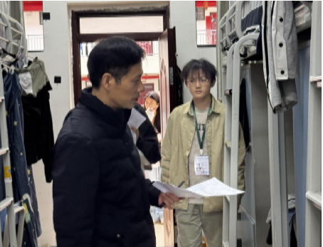 此次活动主要围绕学生生活区的消防安全、宿舍卫生等领域开展检查,重点排查违规使用大功率电器、私拉乱接电线、堵塞消防通道及卫生环境情况欠佳等突出隐患,对检查中发现的问题和不足及时督促整改。在走访过程中,领导老师们除了检查工作,还与学生亲切交流,了解同学们的学业进度、生活情况以及存在的问题。时值期末备考关键期,老师们还特别叮嘱同学们要科学规划复习进度,端正考试态度,诚信应考。