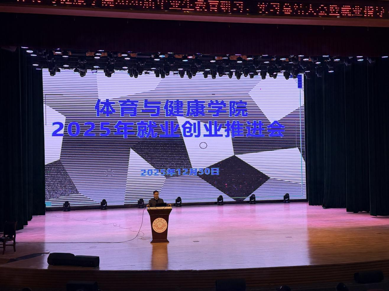 为扎实推动毕业生总结教育实习经验、展示教学风采,12月30日上午,体育与健康学院在武鸣校区音舞楼报告厅举行2026届毕业生教育研习、实习动员大会暨就业指导专题讲座。学院分管教学领导、各教研室主任、带队教师,以及2022级全体毕业生、2023级全体学生共同参会。会议由体育教育专业负责人张俊斌老师主持。