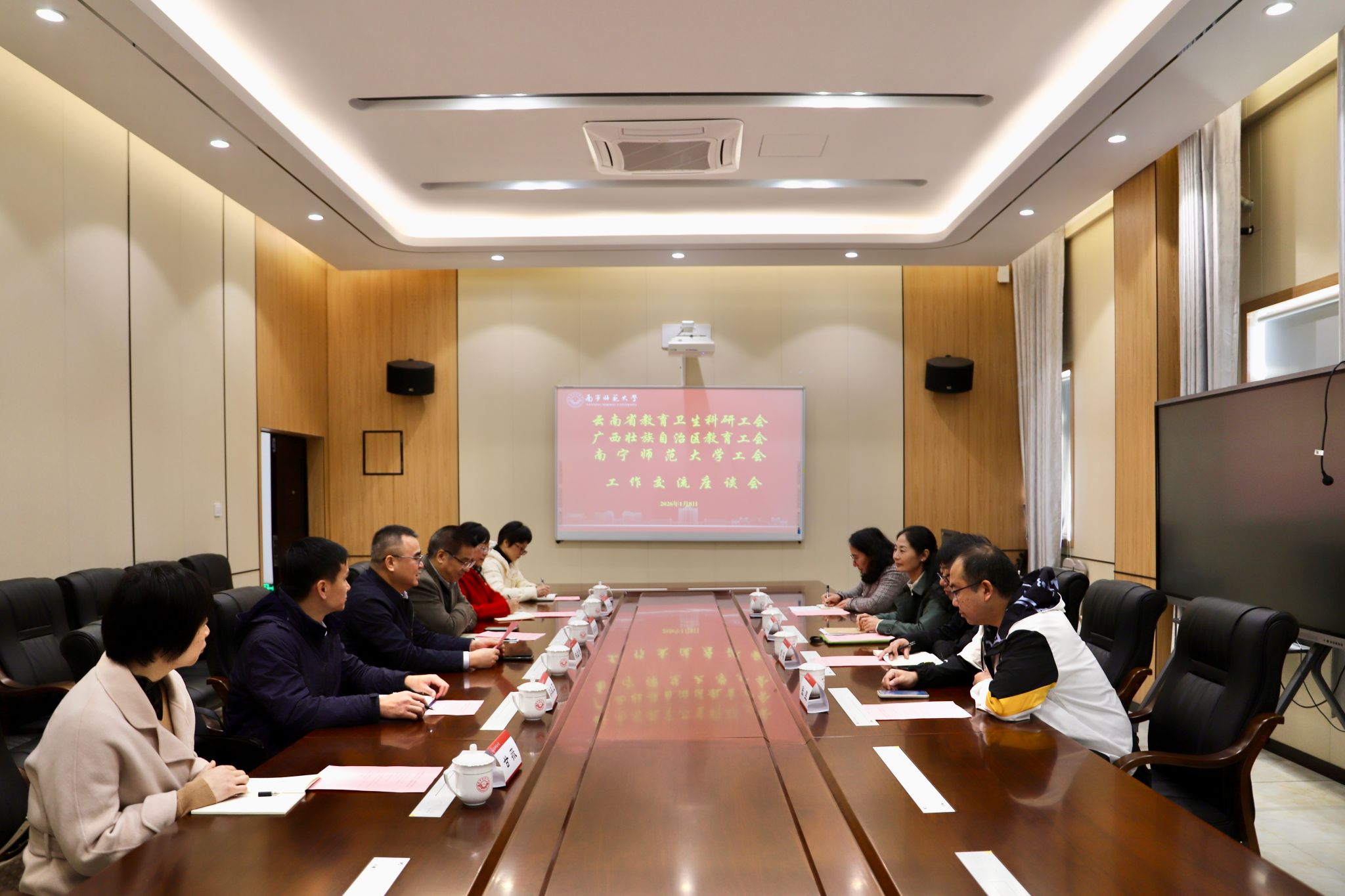 本次调研交流活动受云南省教育卫生科研工会委托,在自治区教育工会的组织协调下开展。双方围绕高校工会组织管理、经费收缴与使用、党组织隶属关系下的工会管理模式等内容进行了深入研讨。两校工会还重点交流了“智慧工会”建设路径与工会职能优化等创新实践。