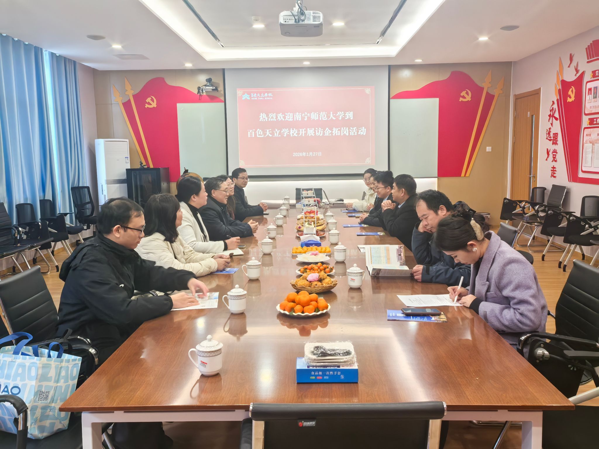 27日上午,调研组赴百色天立学校和百色市现代高级中学进行实地走访与座谈,了解学校发展状况及岗位需求,并与在岗校友交流,切实掌握其待遇状况和职业发展路径。
