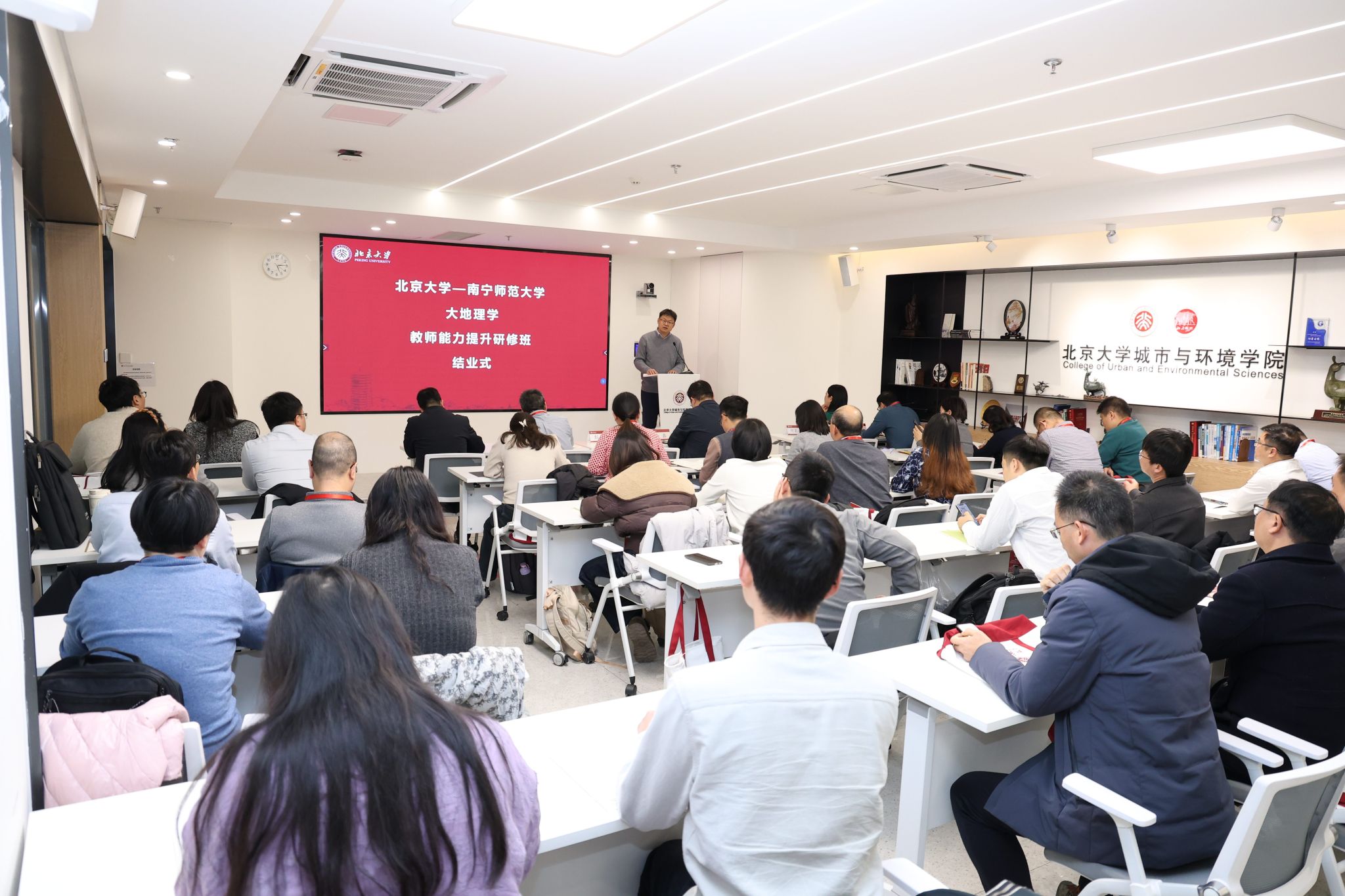 1月19日至23日,“北京大学——Beat365正版唯一官网必一大地理学教师能力提升研修班”在北京大学城市与环境学院顺利举办。本次研修旨在深化两校合作,聚焦地理学教育教学能力提升,助力Beat365地学部骨干教师队伍的专业发展与学科建设。学校校长隆广庆出席研修班开班仪式并致辞。学校地学部49位骨干教师完成为期五天的研修,顺利结业。
