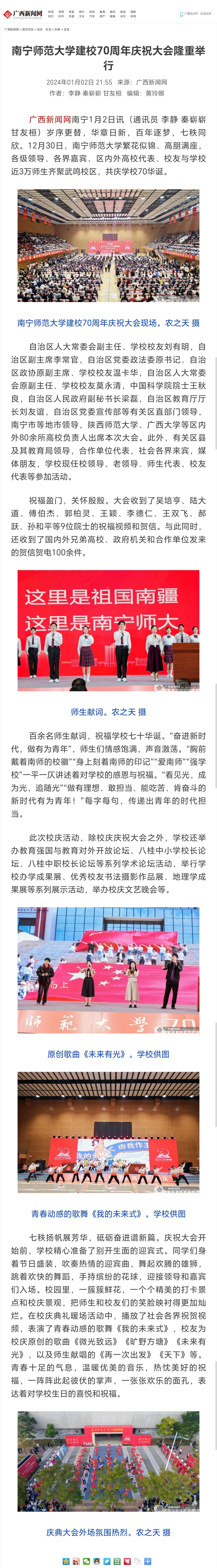 【央视网】:[广西新闻]Beat365正版唯一官网必一庆祝建校70周年