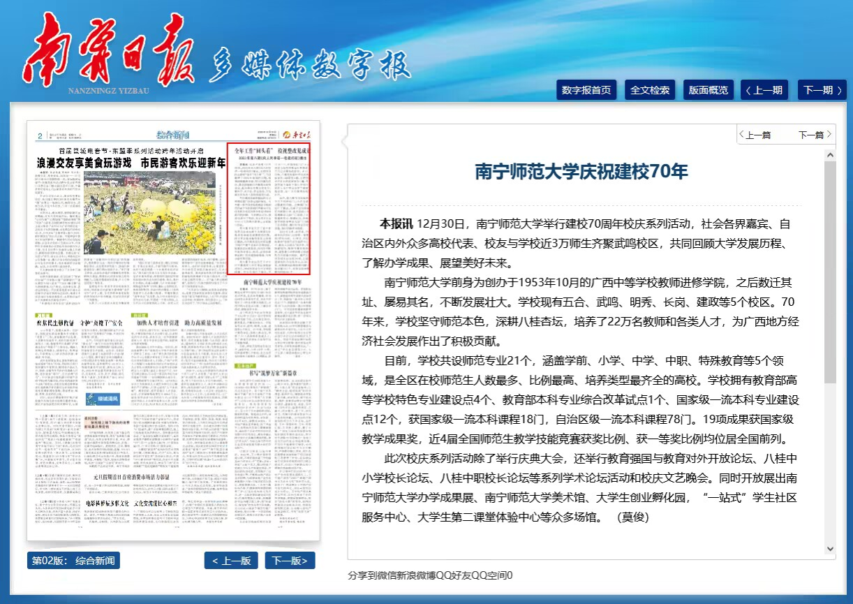 【南宁日报】:Beat365正版唯一官网必一庆祝建校70年